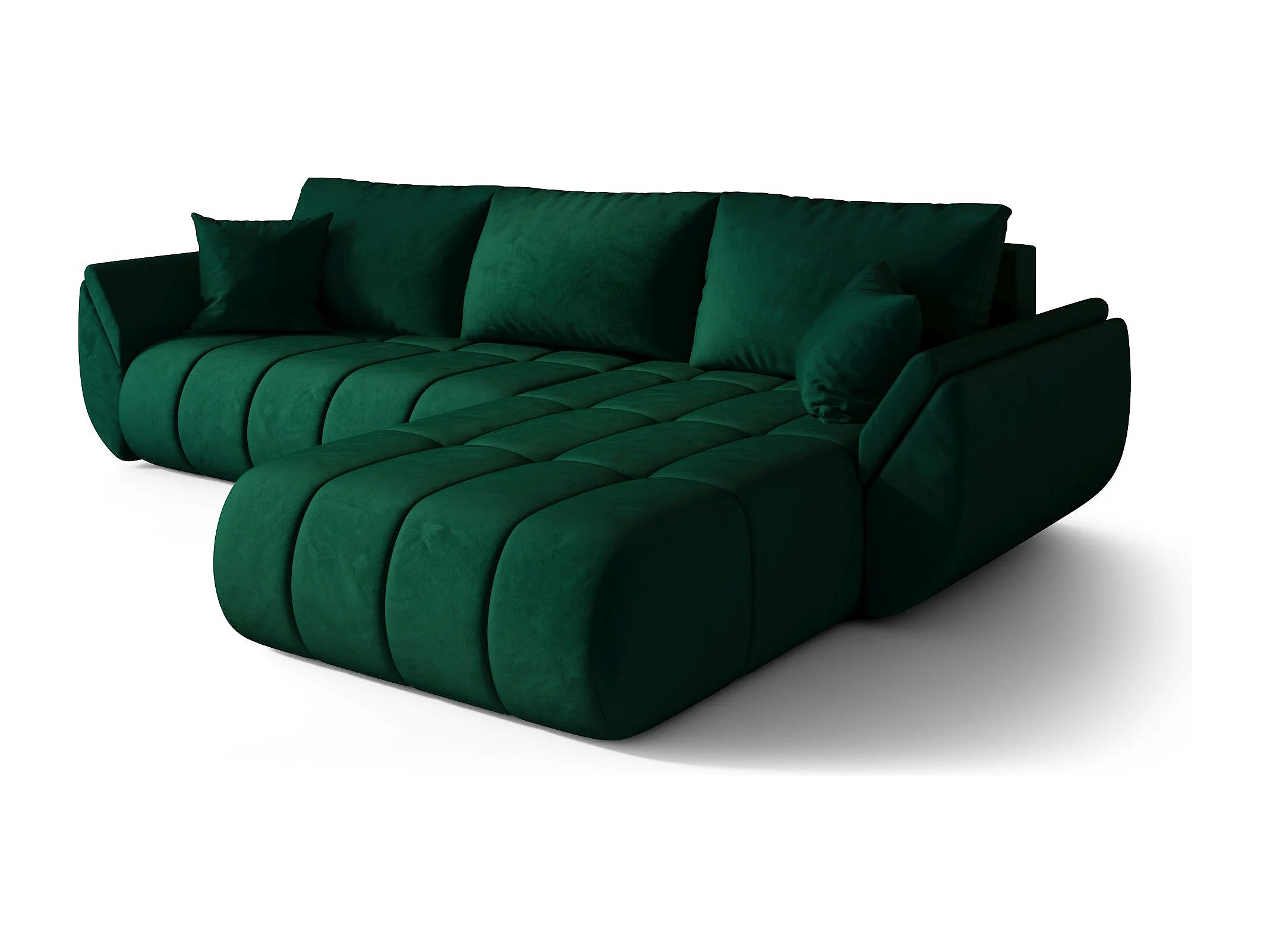 Canapé d'angle avec fonction couchage et coffre de lit Modena Round tissu Arena Green Left