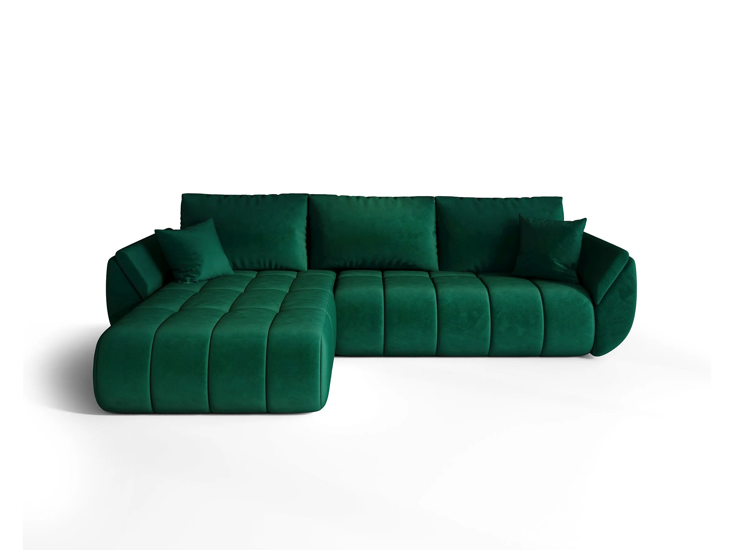 Canapé d'angle avec fonction couchage et coffre de lit Modena Round tissu Arena Green Left
