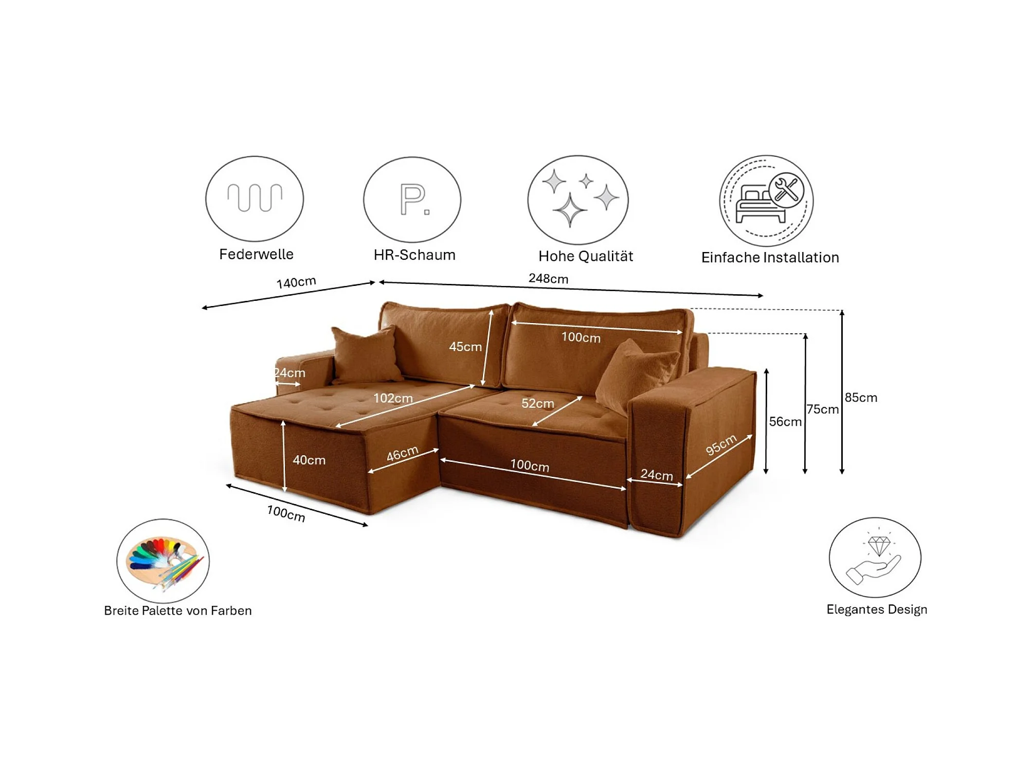 Canapé d'angle convertible EVORA L Cuivre