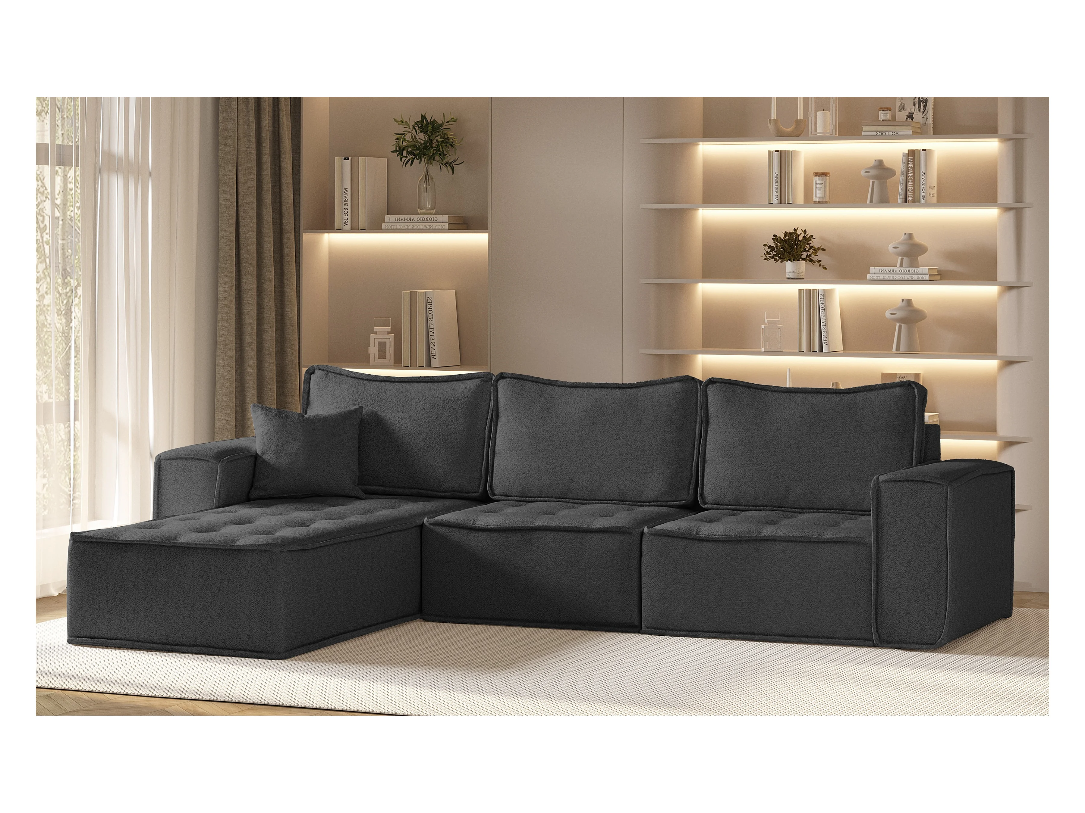 Canapé d'angle Bohoo Maxi L-from, tissu Raven, graphite, gauche