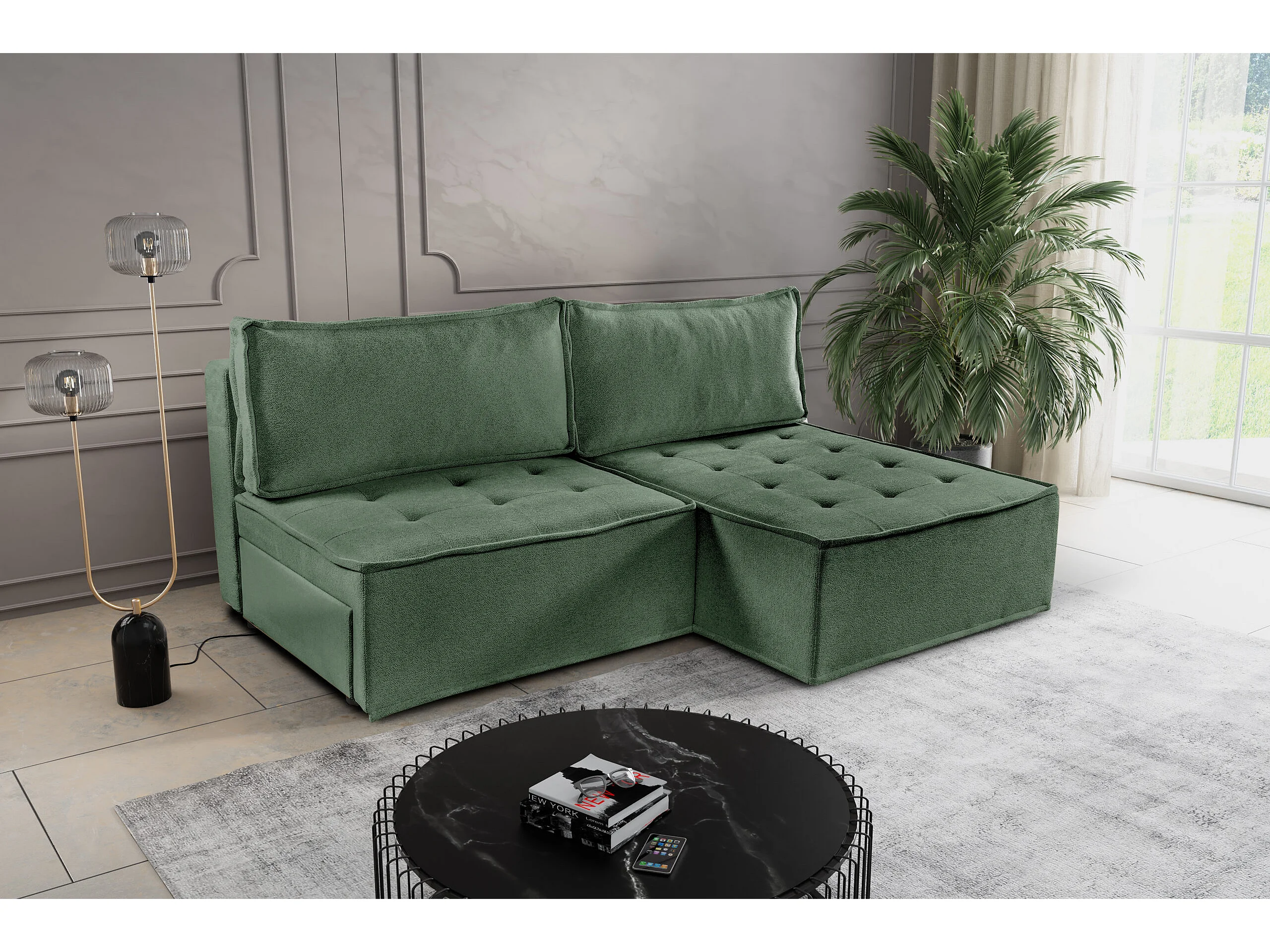 Canapé d'angle Best en L avec fonction couchage et coffre de lit, tissu Neve, vert, droit