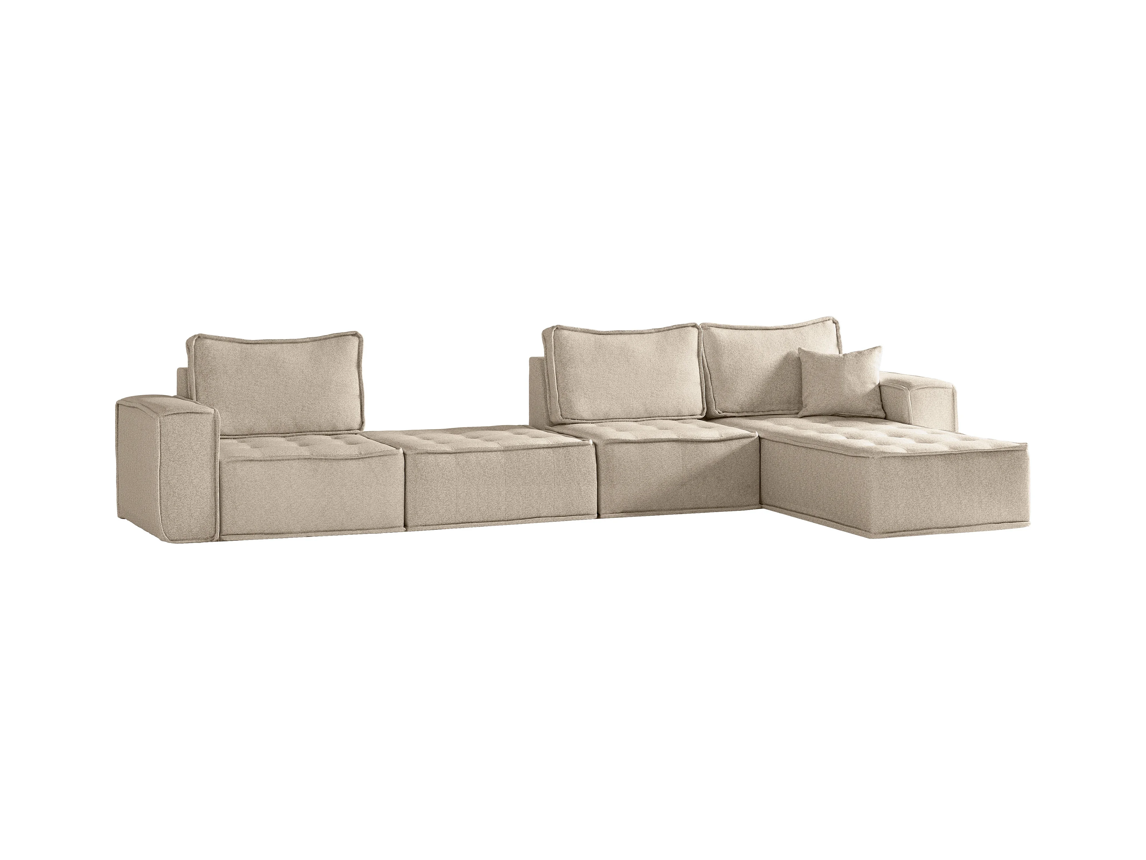 Cosmopolitan Design - Canapé d'angle droit panoramique "Vienna" 7 places en tissu structurel beige - 330x235x95cm