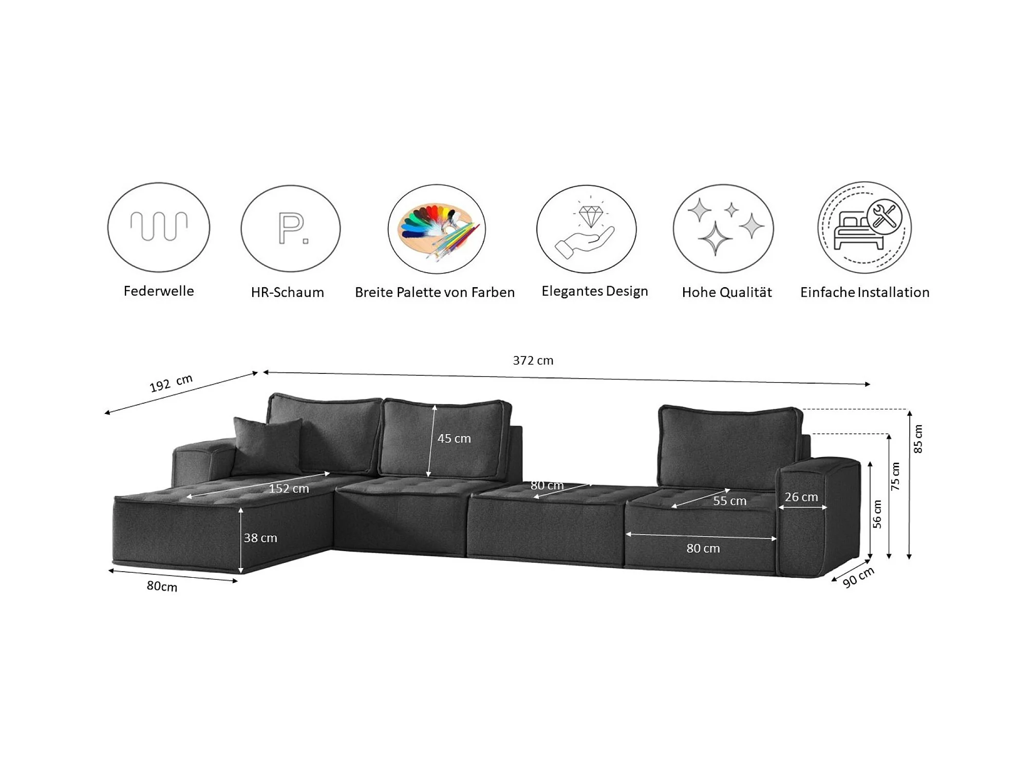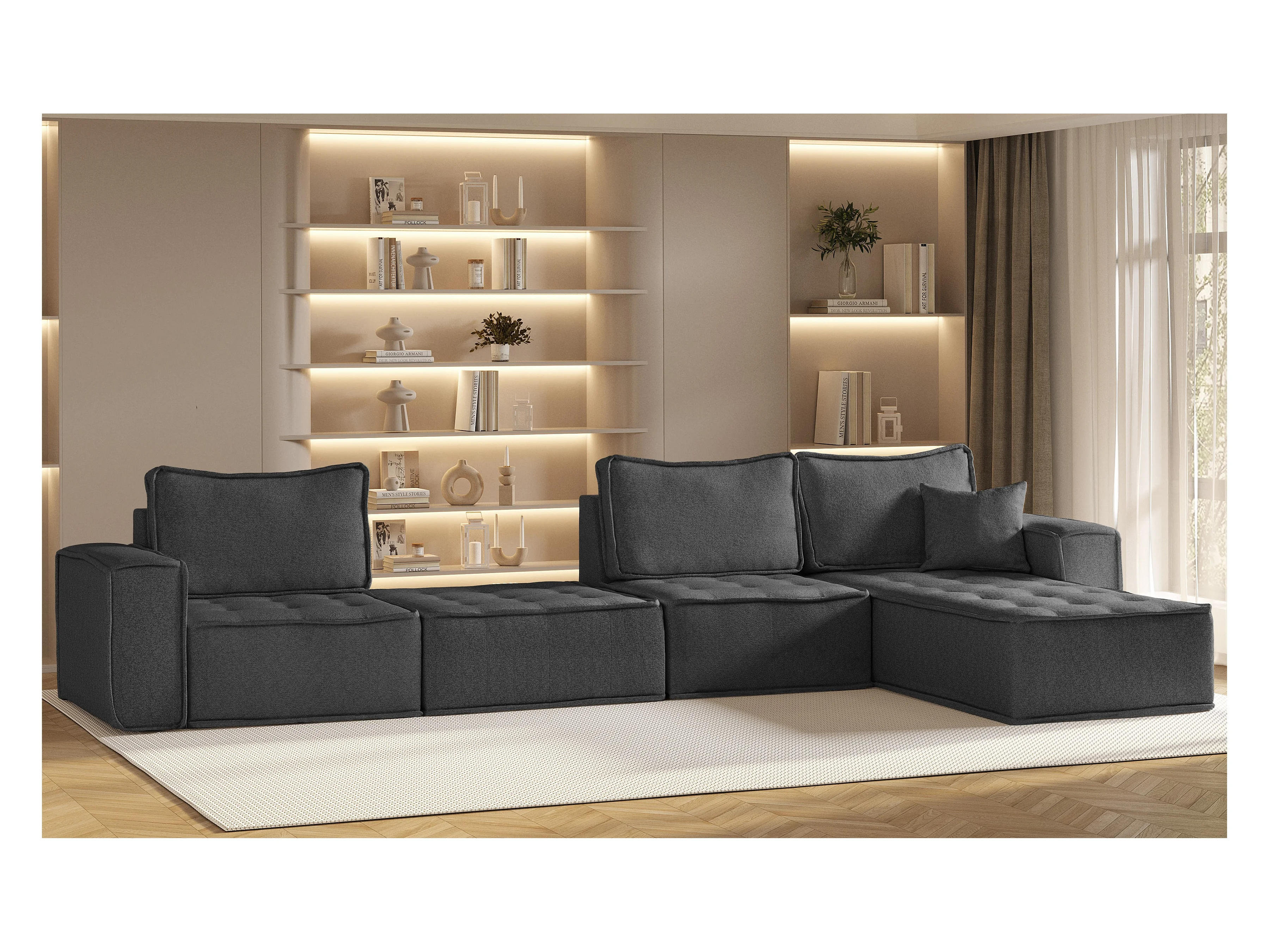 Canapé d'angle Bohoo XL en L, tissu Raven, graphite, droit
