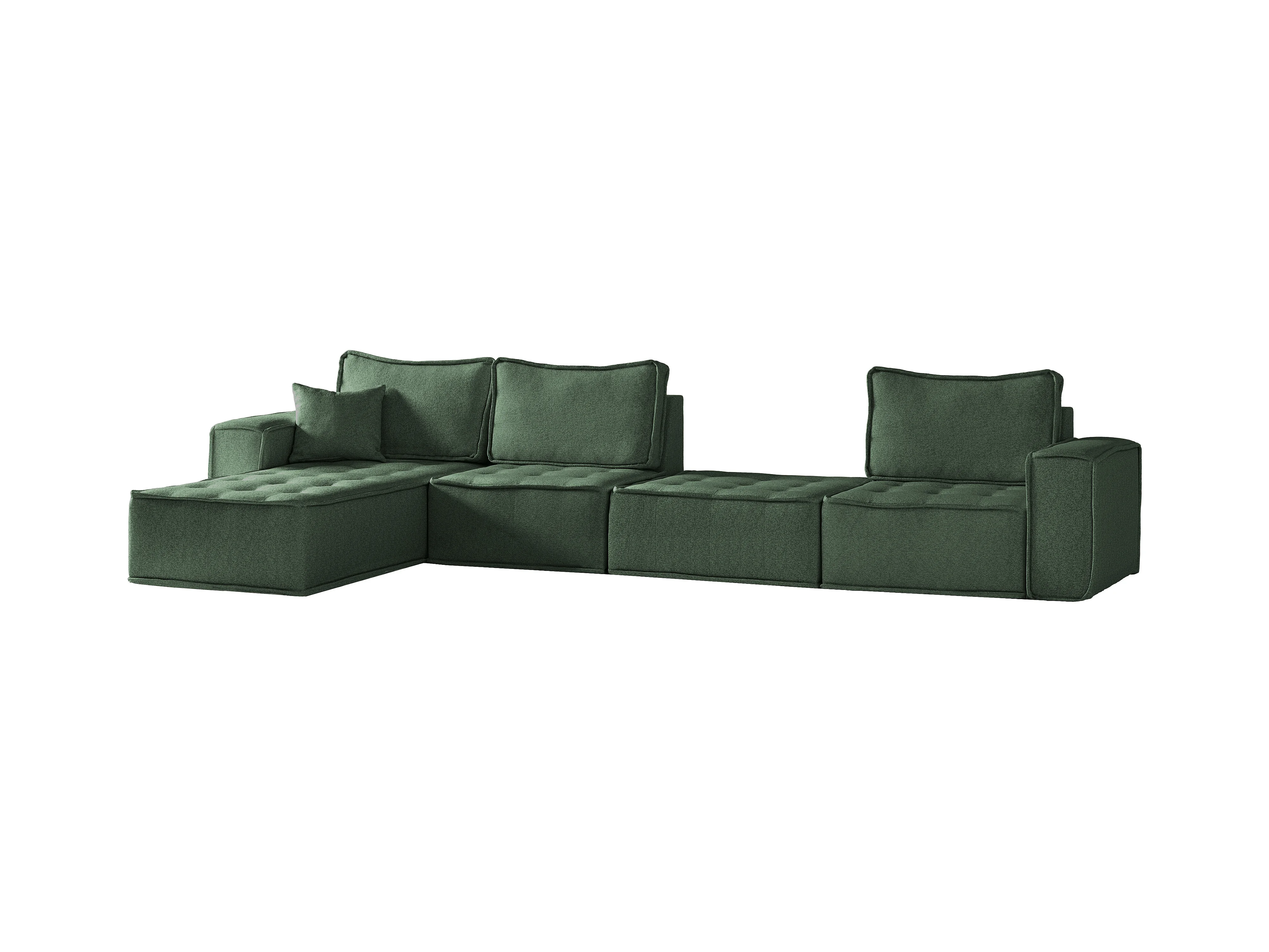 Cosmopolitan Design - Canapé d'angle gauche panoramique "Bali" 7 places en tissu structurel vert - 327x256x75cm