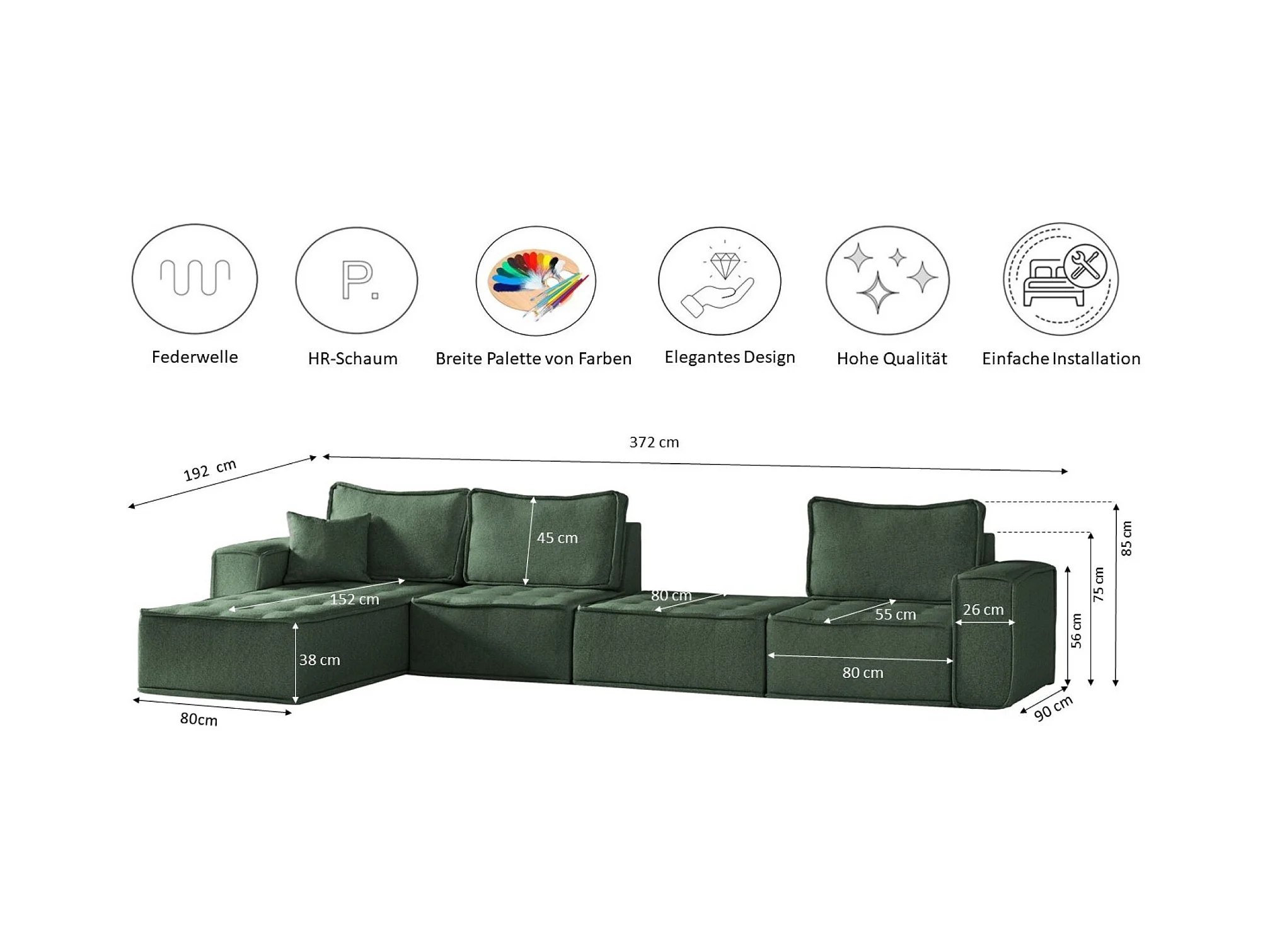 Cosmopolitan Design - Canapé d'angle droit panoramique "Bali" 7 places en tissu structurel vert - 327x256x75cm