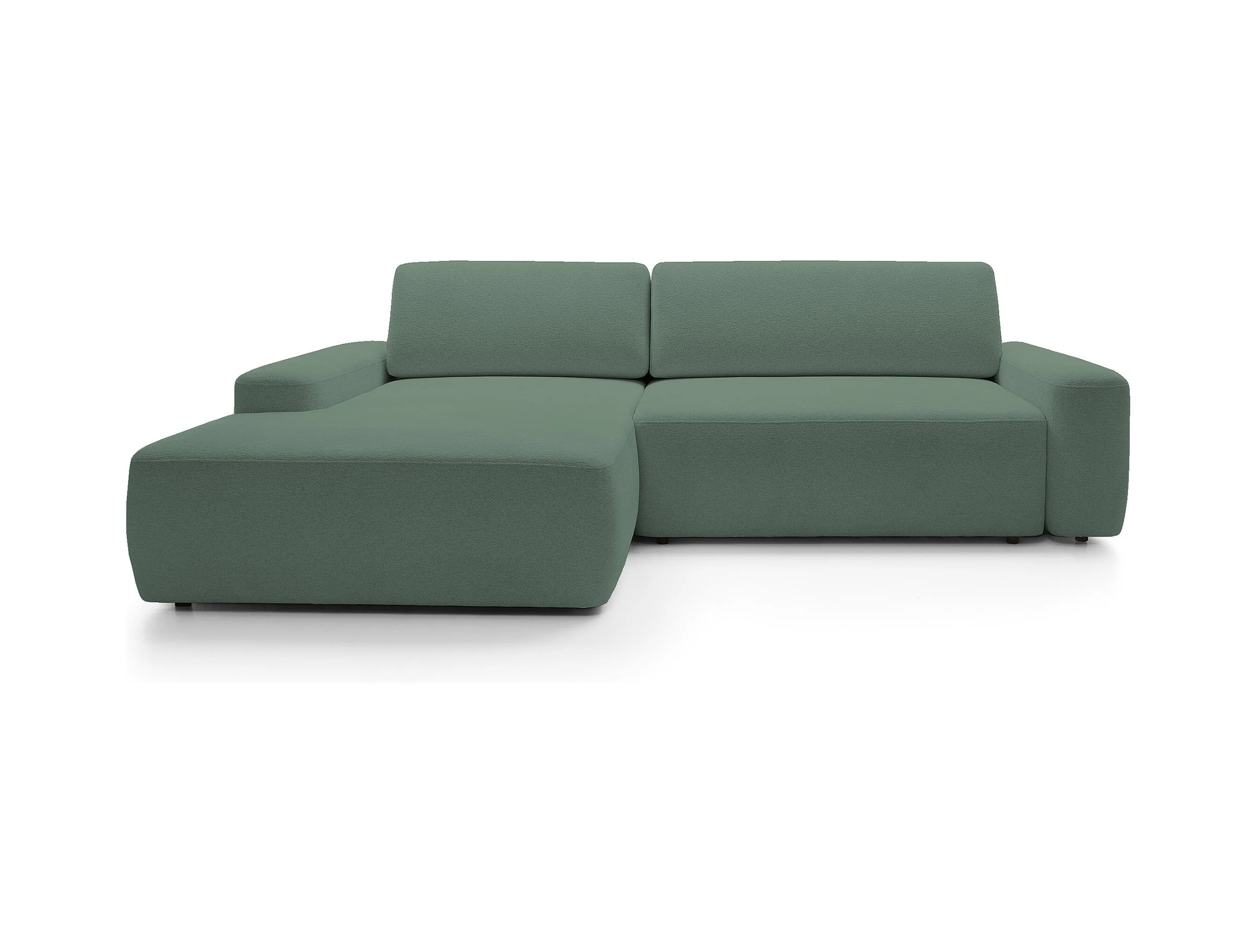 Canapé d'angle BABU avec lit – Sofa convertible moderne CLOUD, 300x105x60cm, côté gauche, Vert