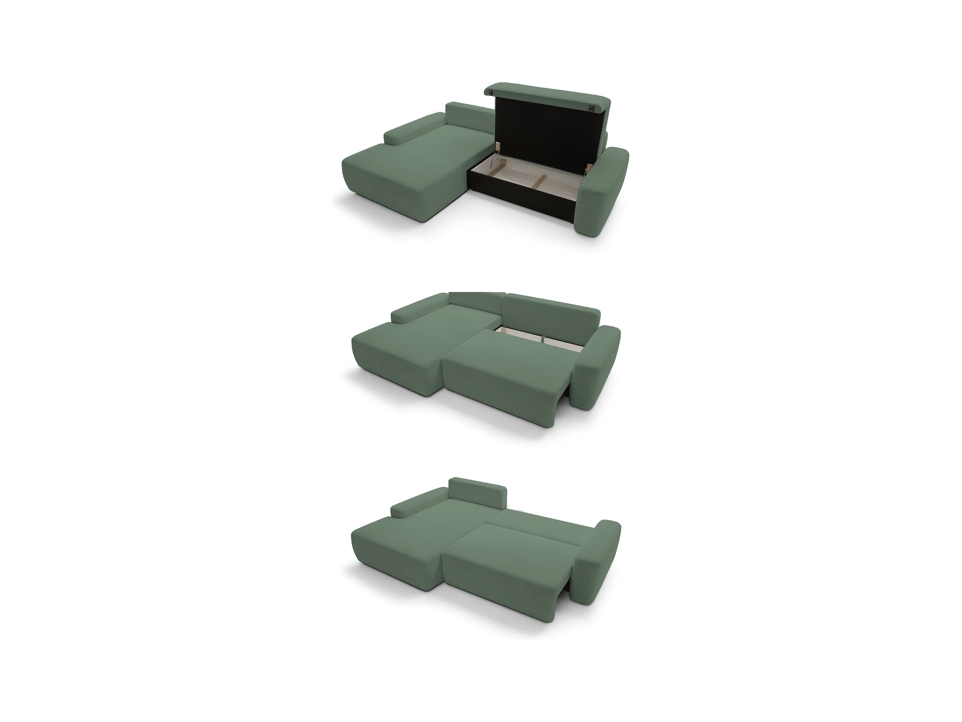 Canapé d’angle BOULI 4 places Raven, couchage 130x210cm, coffre, 264x162x82cm, gauche vert