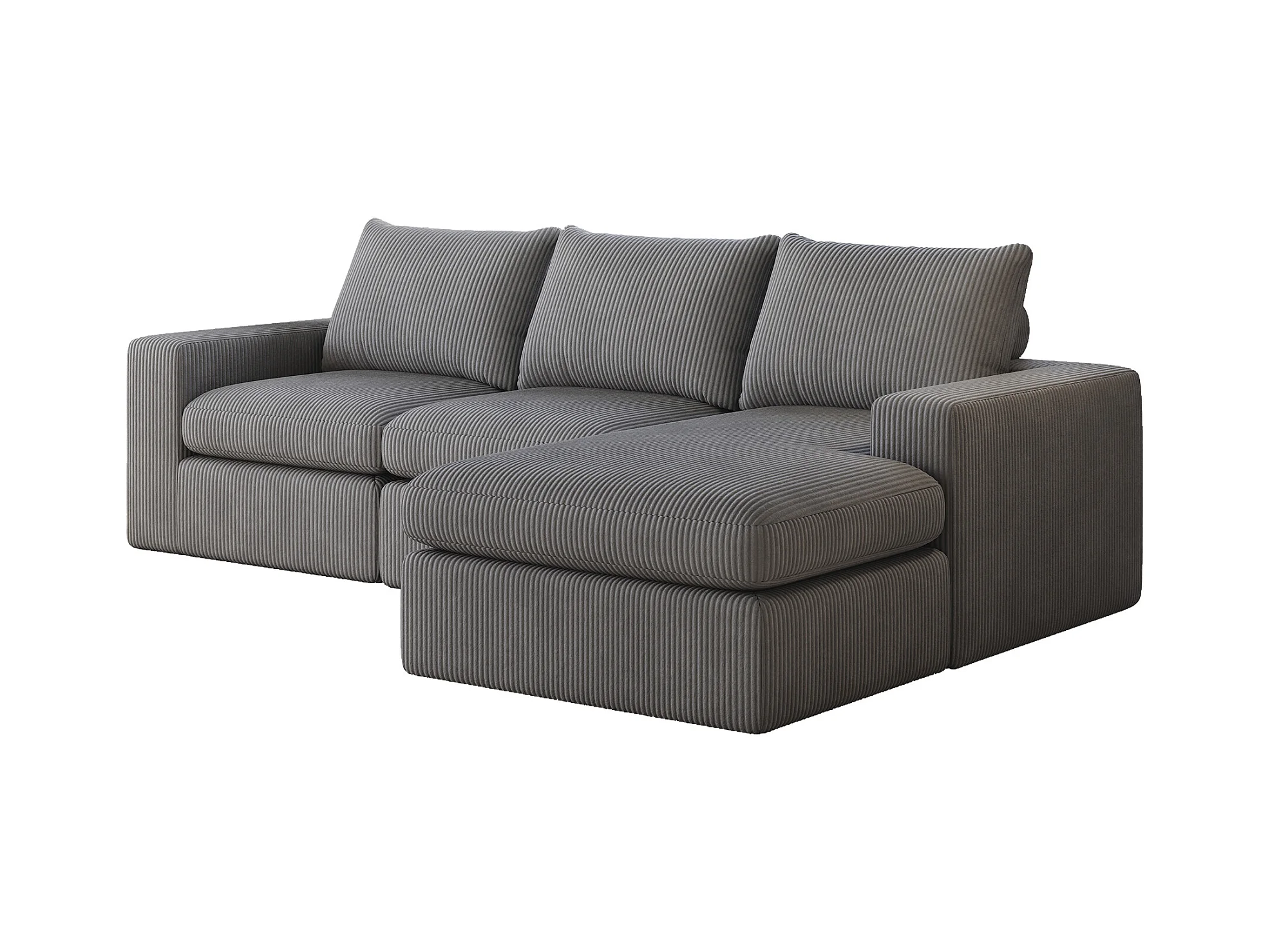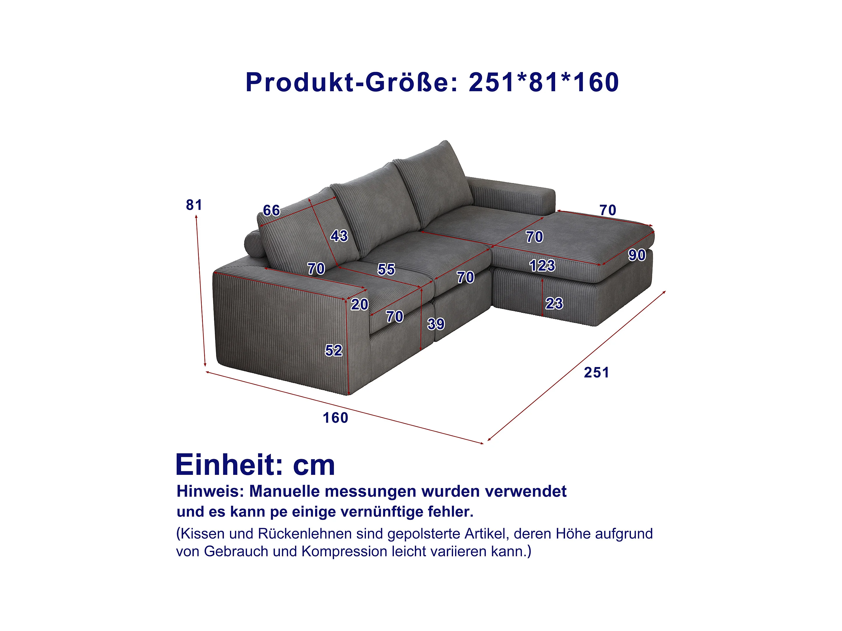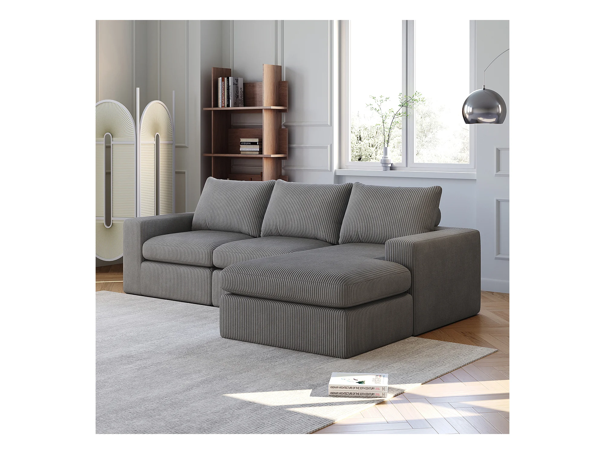 Canapé d'angle - Canapé 3 places avec trois coussins et accoudoirs - velours côtelé gris foncé