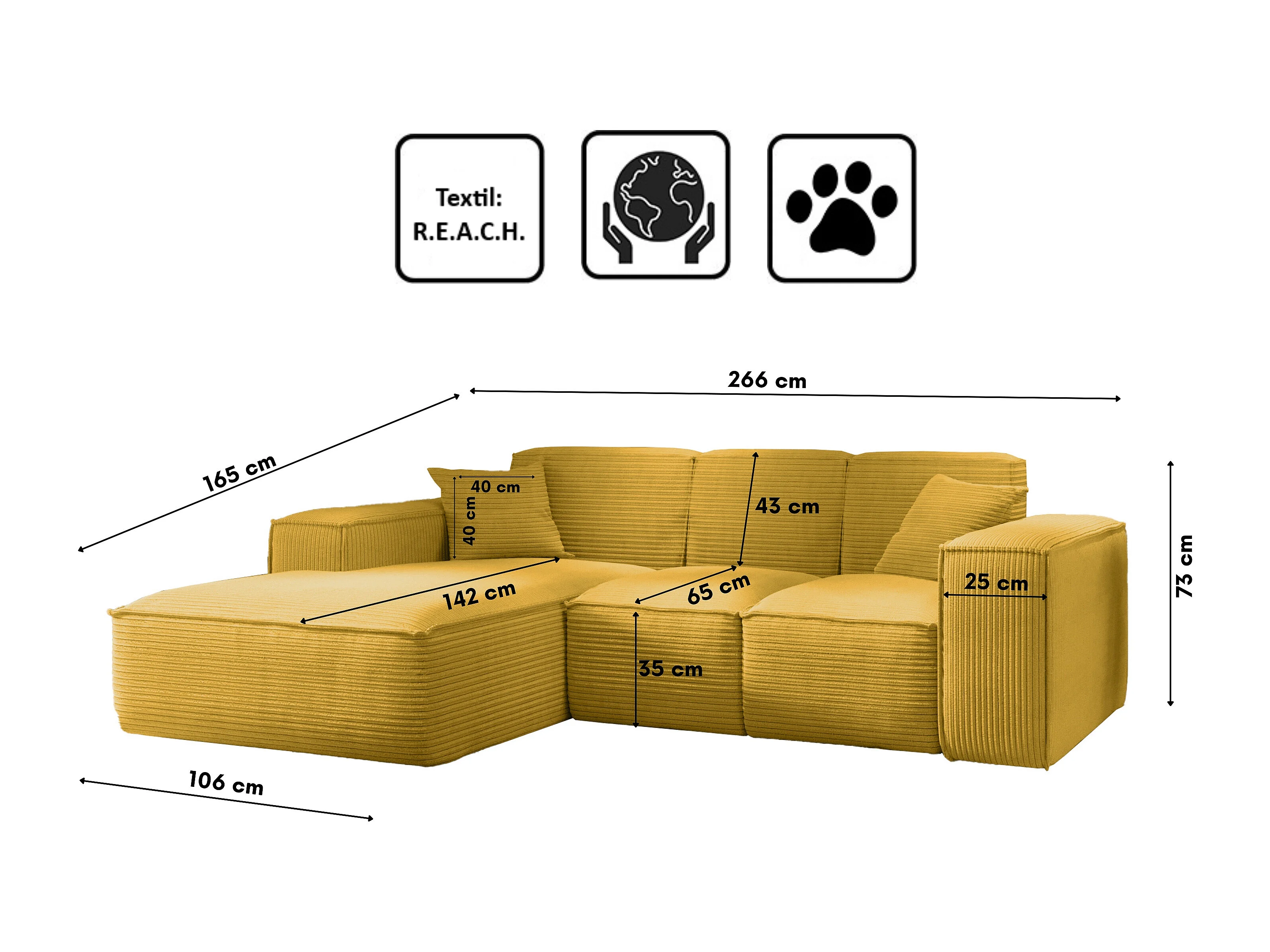 Canapé d'angle droit en tissu chenille - moutarde - HOKU