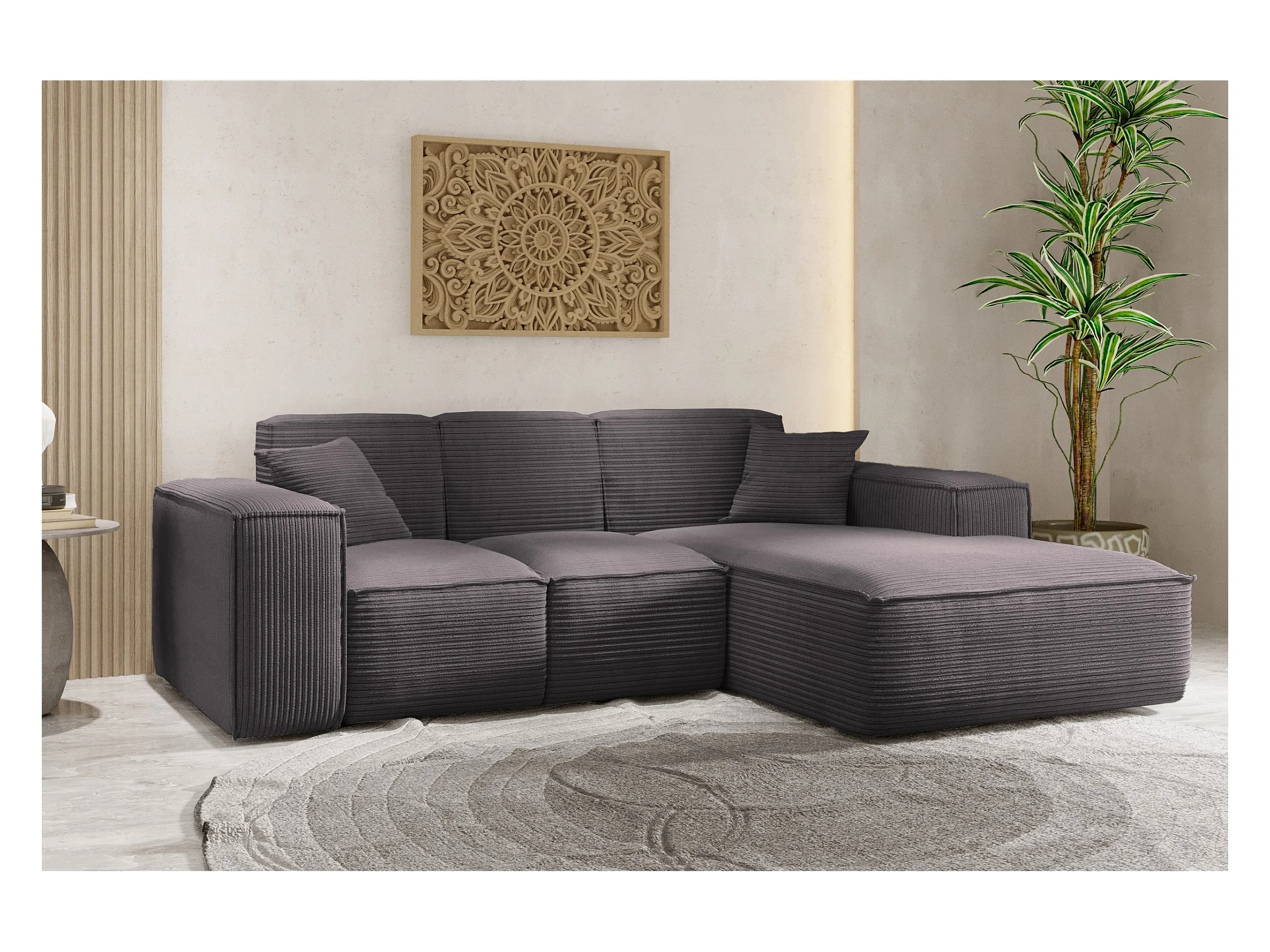Canapé d'angle en L PULA, tissu Opera Velvet, gris, droit