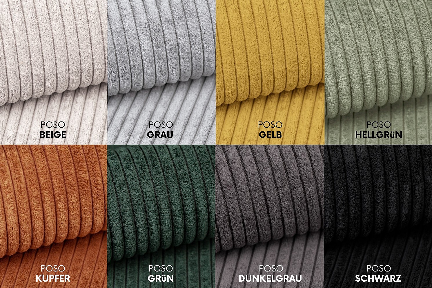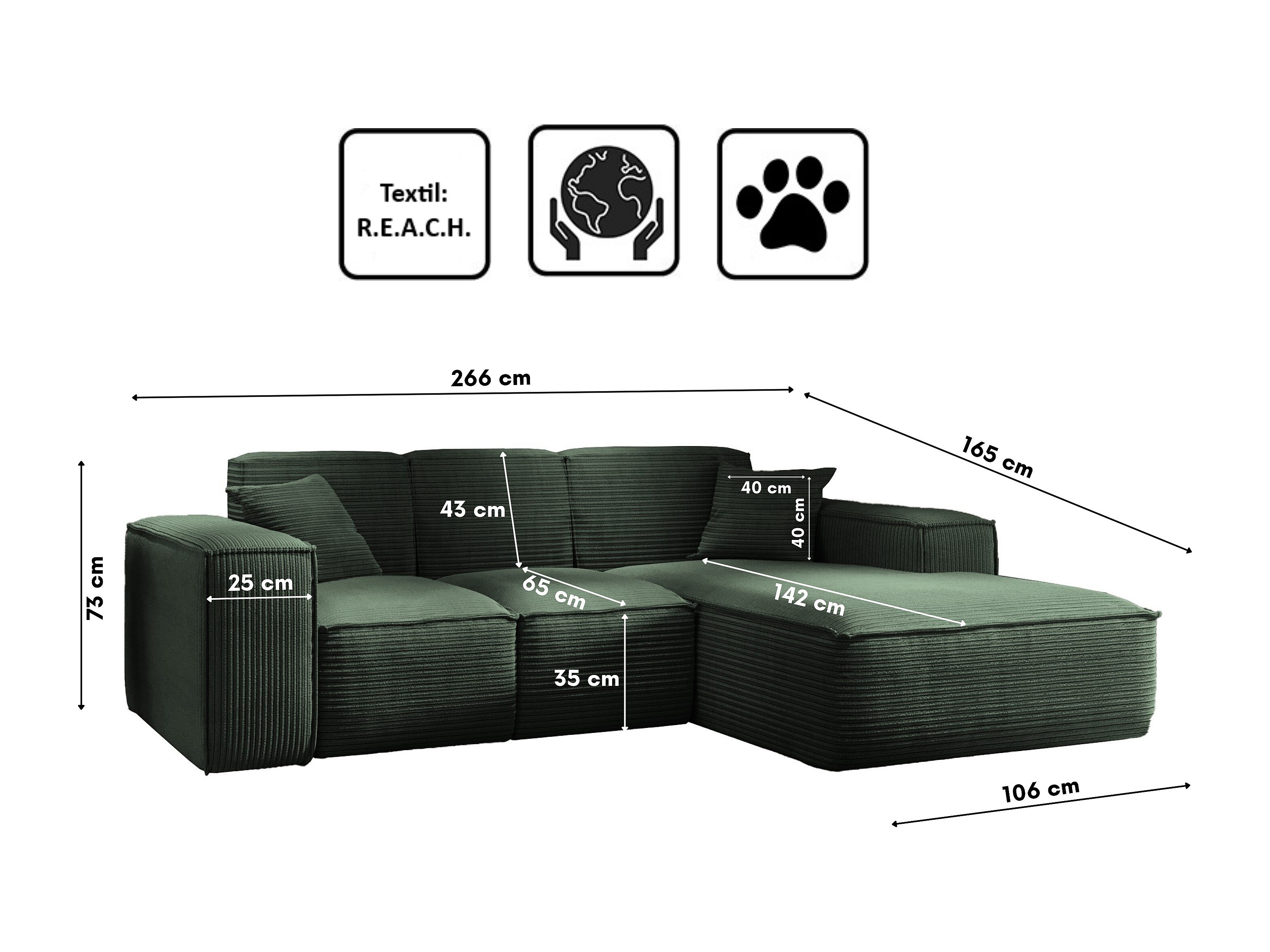 Canapé d'angle, canapé d'angle en L, salon, tissu SIENA, canapé Poso, vert, droite