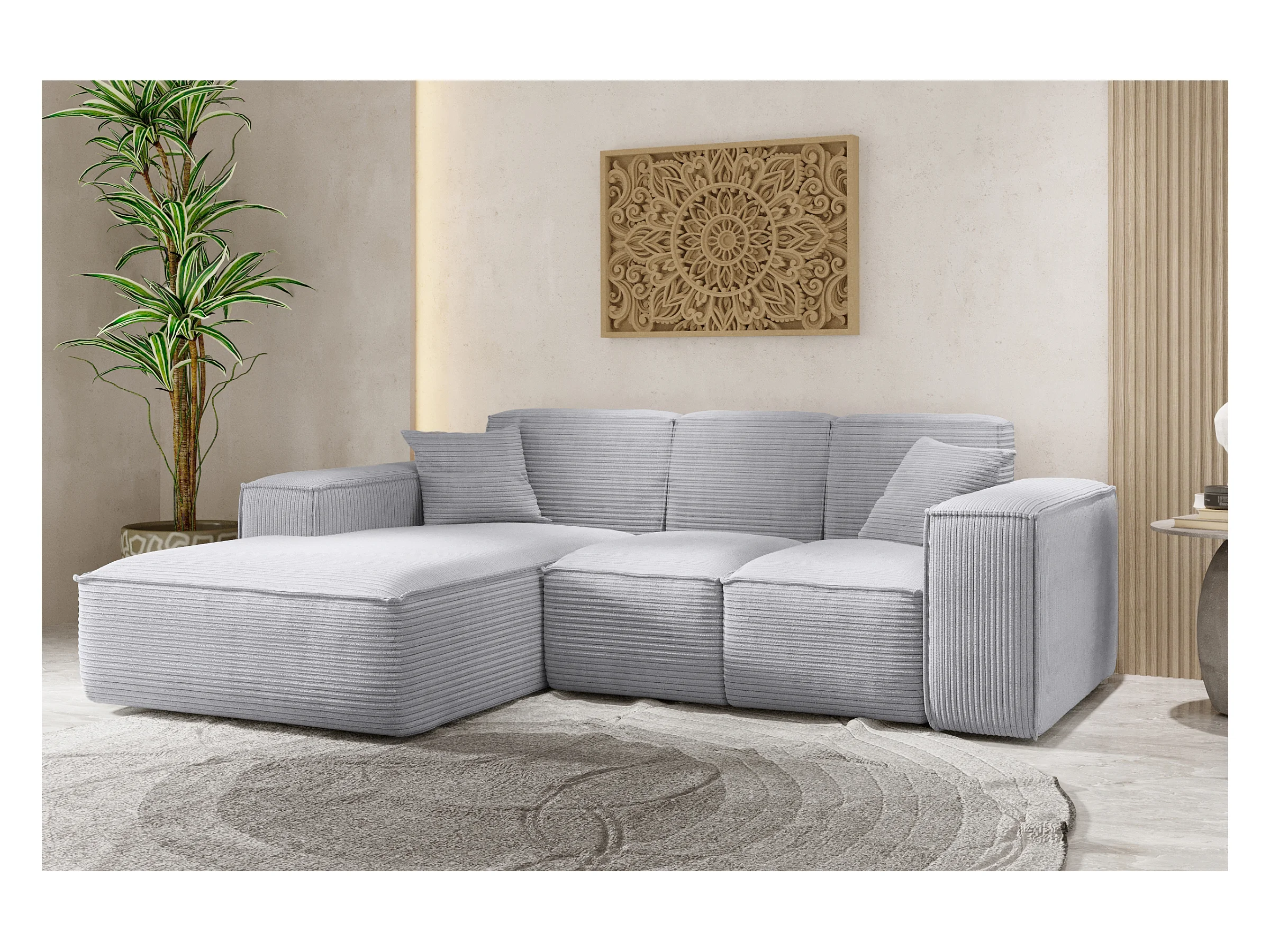 Canapé d'angle en L PULA, tissu Perfect Harmony, gris, gauche