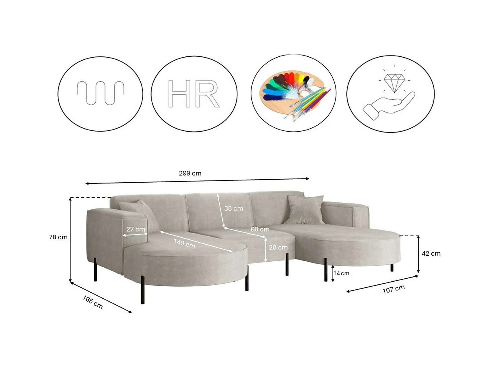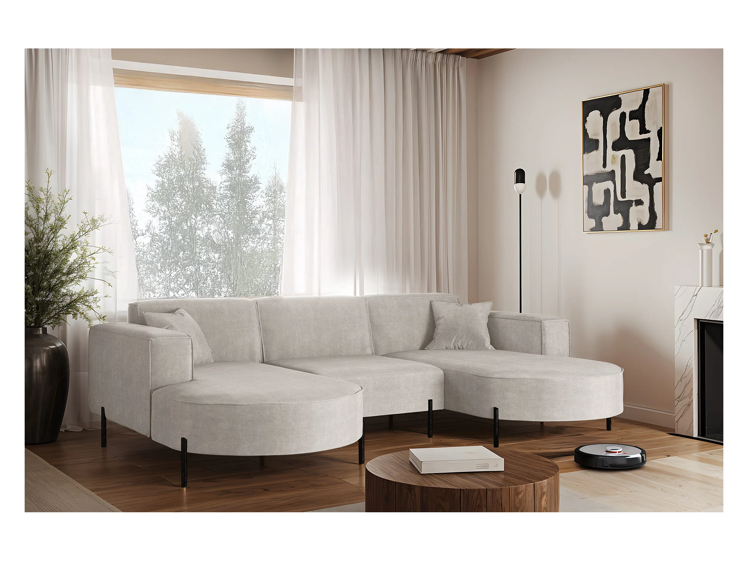Canapé d'angle en U Cursal, tissu Artico, Ciment