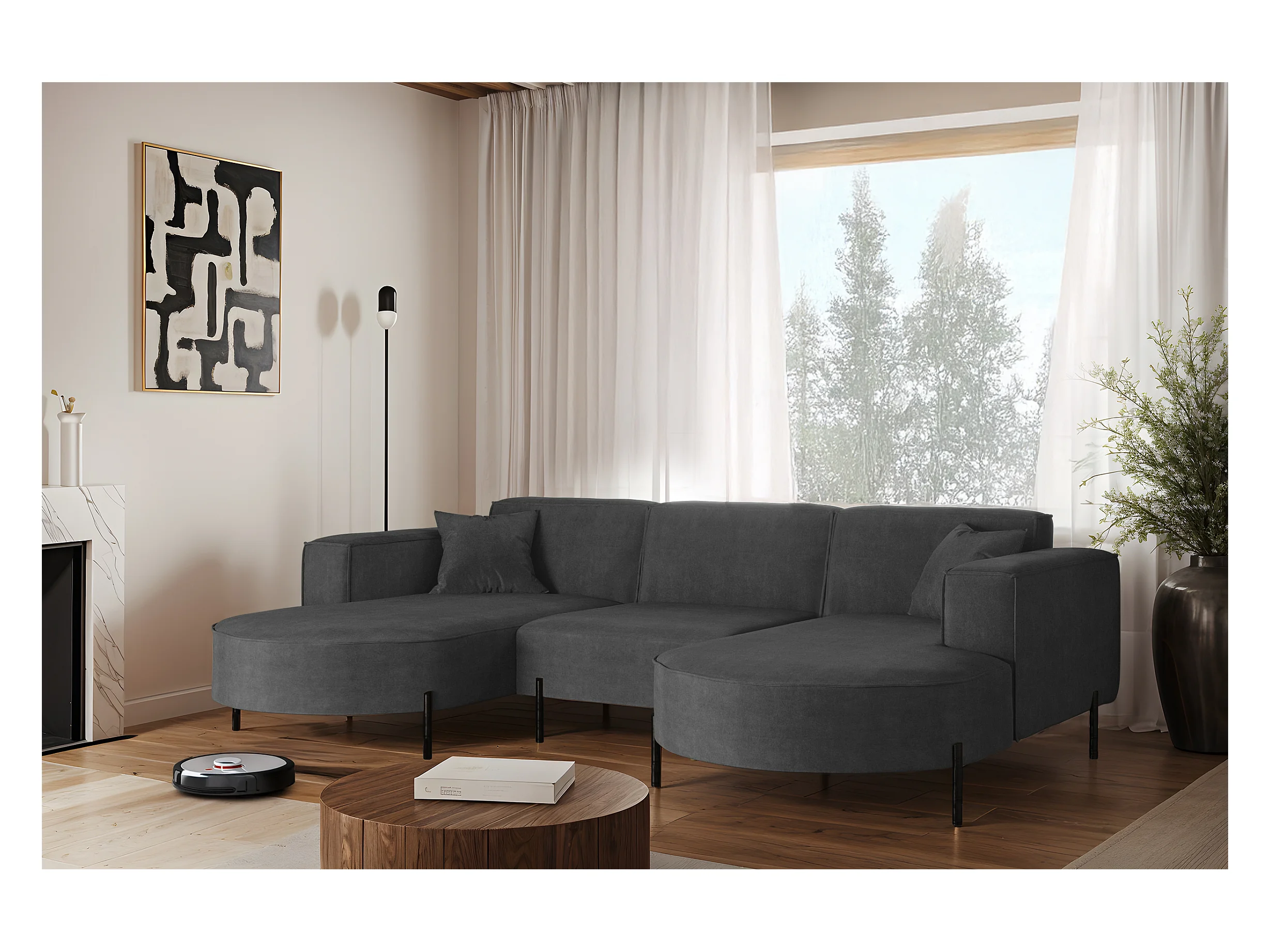 Canapé d'angle Bohoo Maxi L-from, tissu Raven, gris foncé, droit