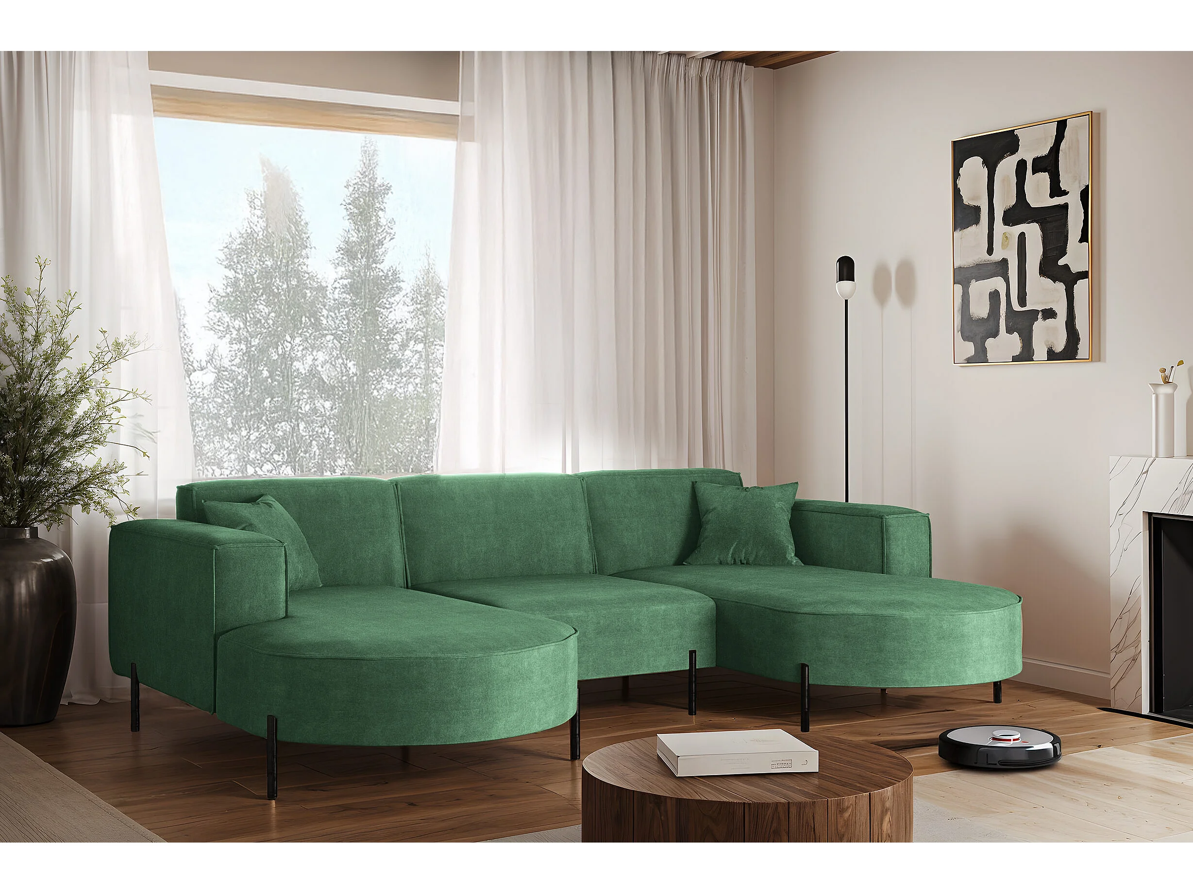 Canapé d'angle en U Cursal, tissu Artico, Moss