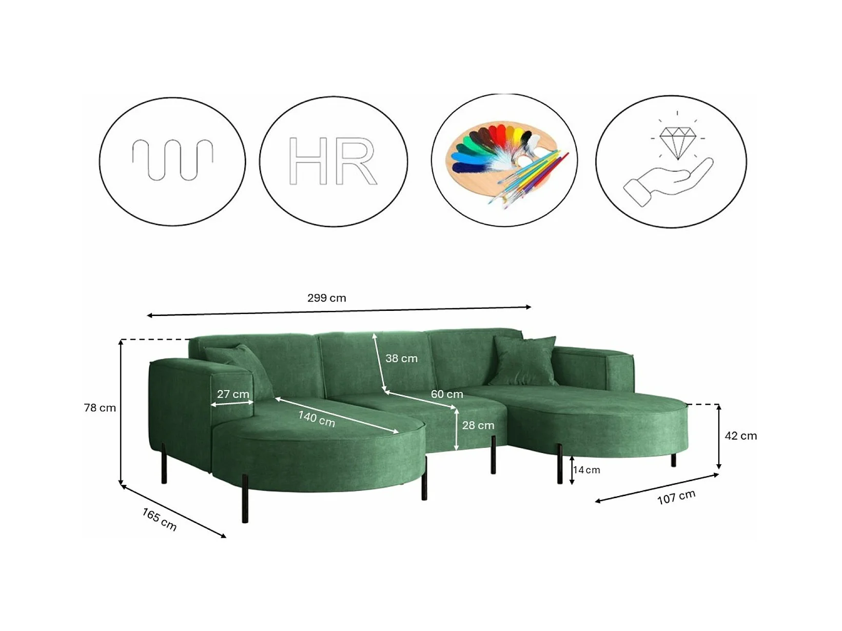 Canapé d'angle, Canapé Designer Modena U Pure tissu Quelle Green