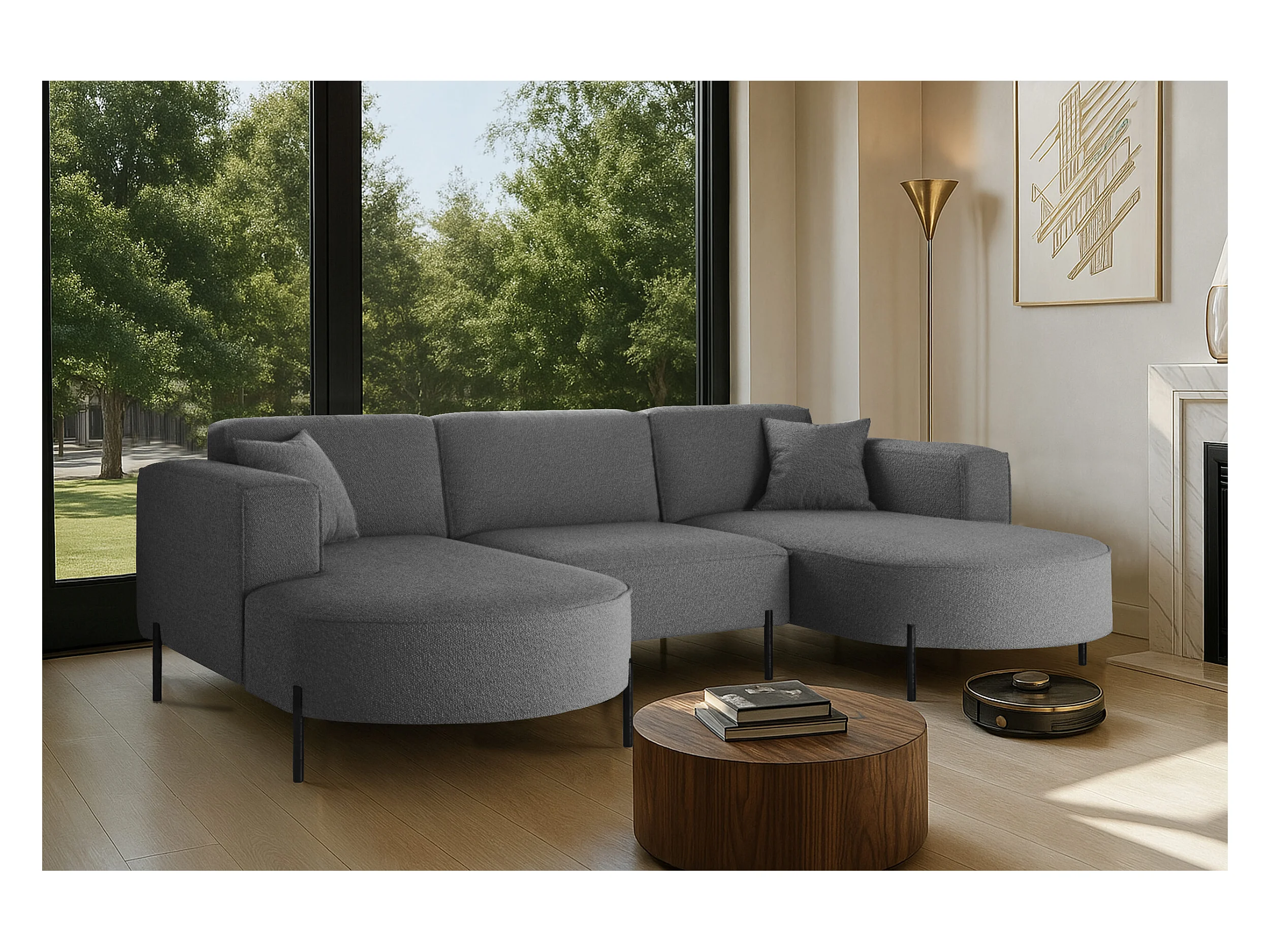Canapé d'angle en U Cursal, tissu Artico, Ciment