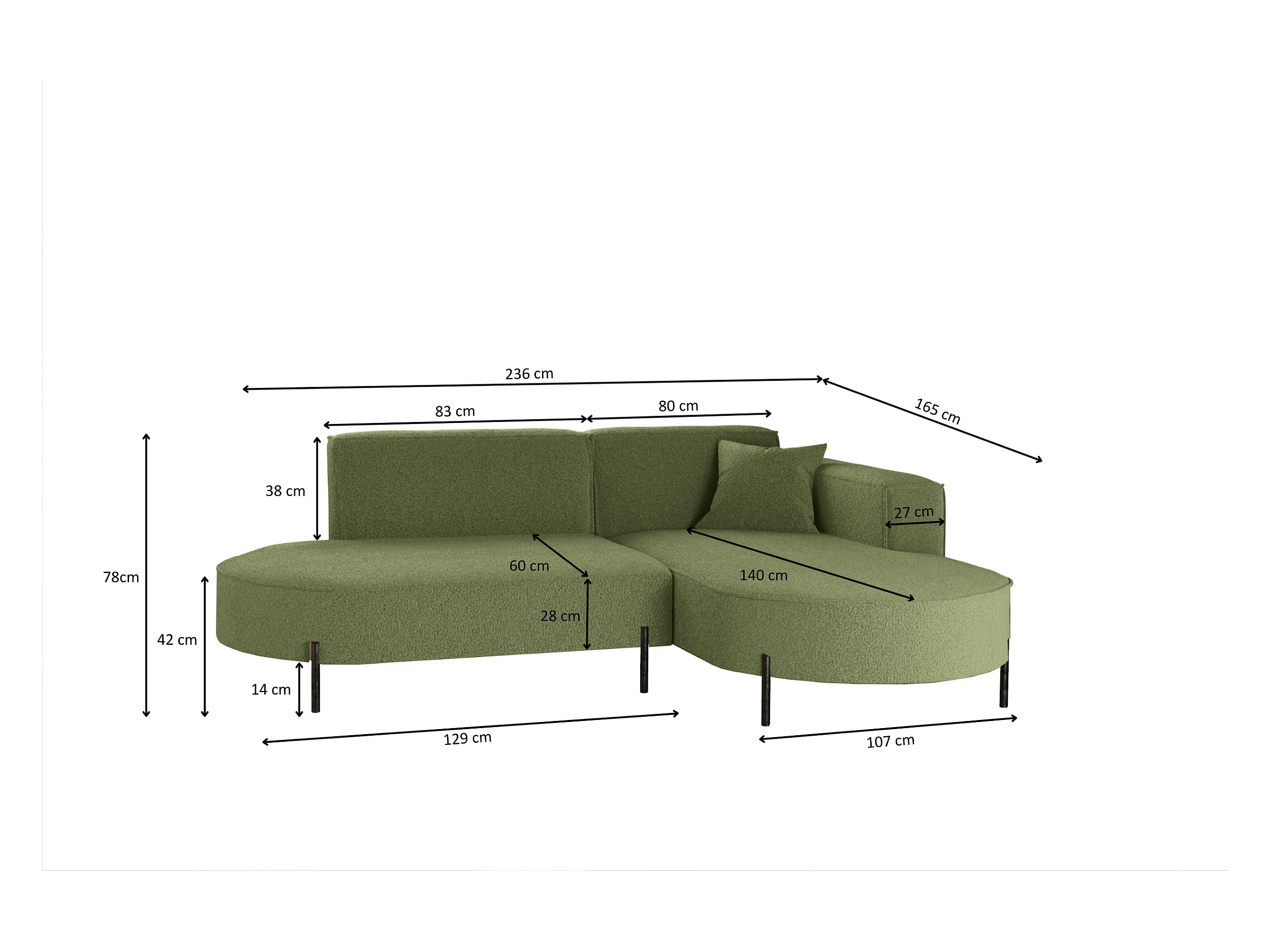 Canapé d'angle L-form Round Cursal, tissu Artico, Moss, gauche