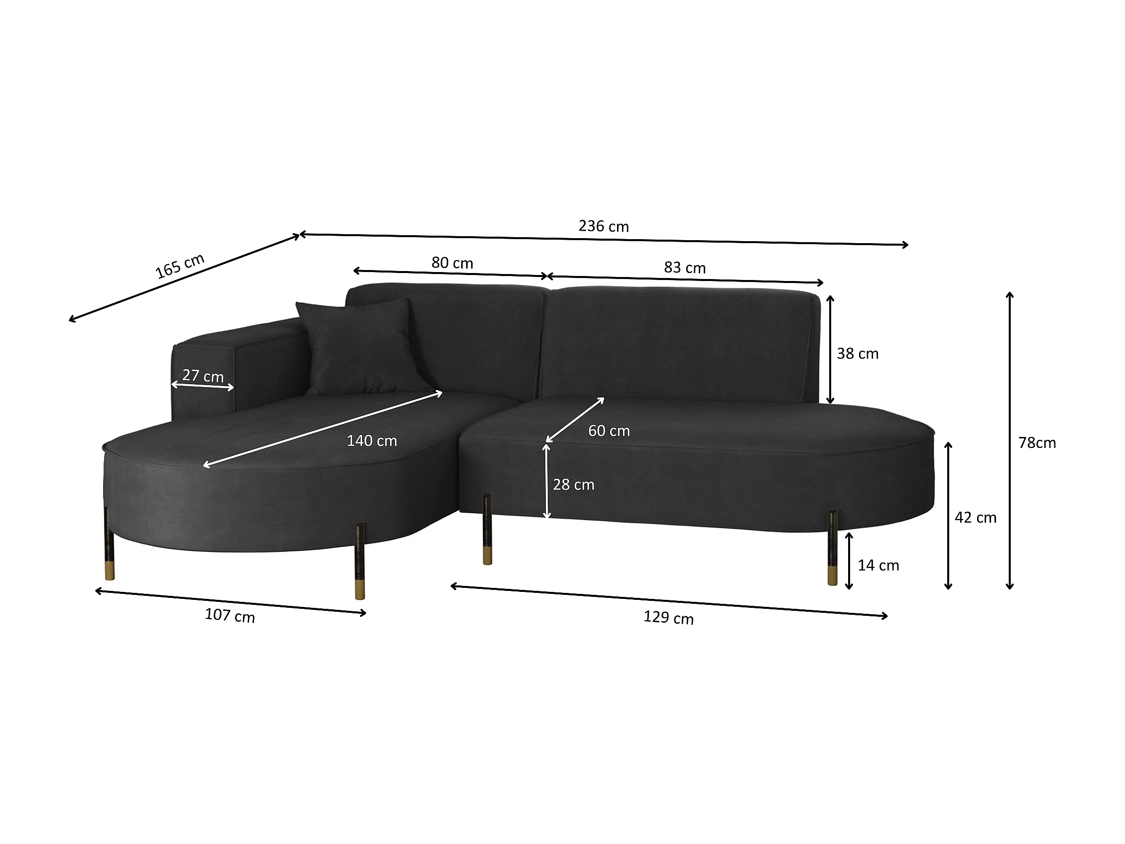 Canapé d'angle, canapé en L, designer Modena, tissu pur Noel Graphite Gauche