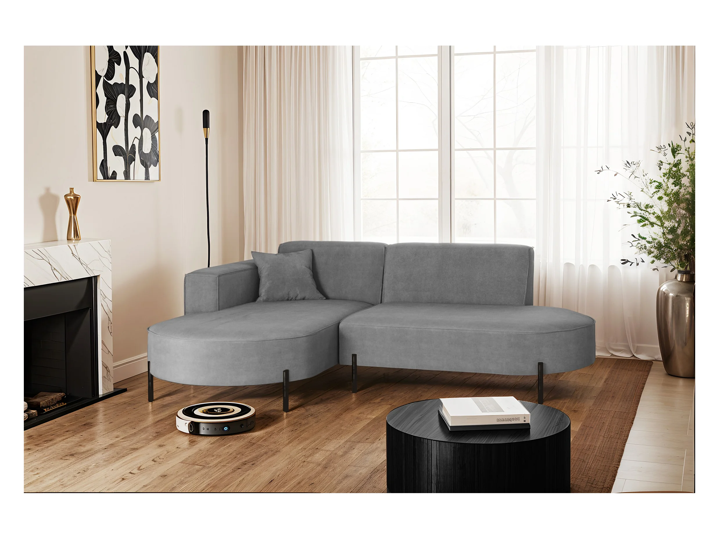 Canapé d'angle en L PULA, tissu Opera Velvet, gris, gauche