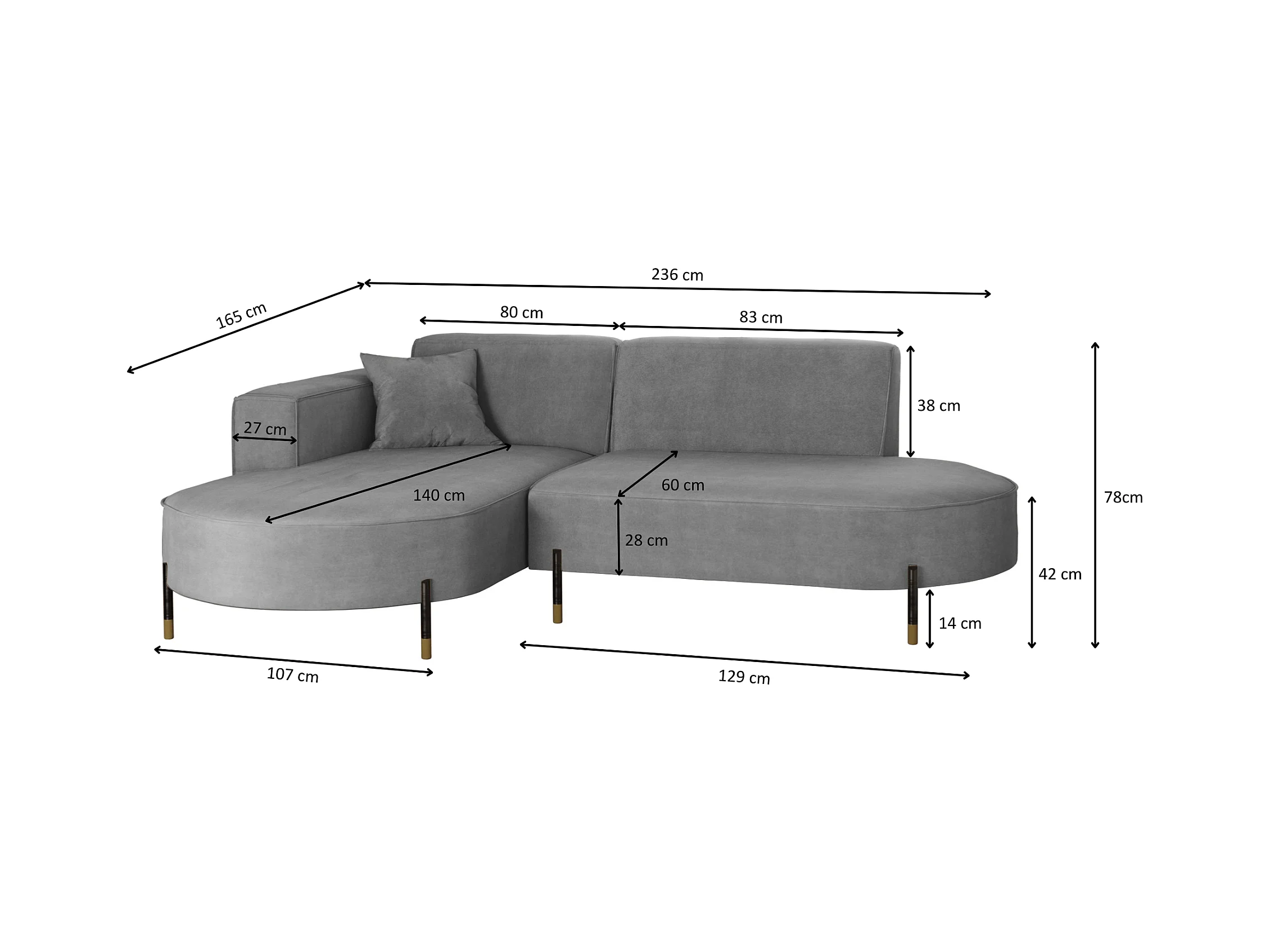 Canapé d'angle gris 3 places