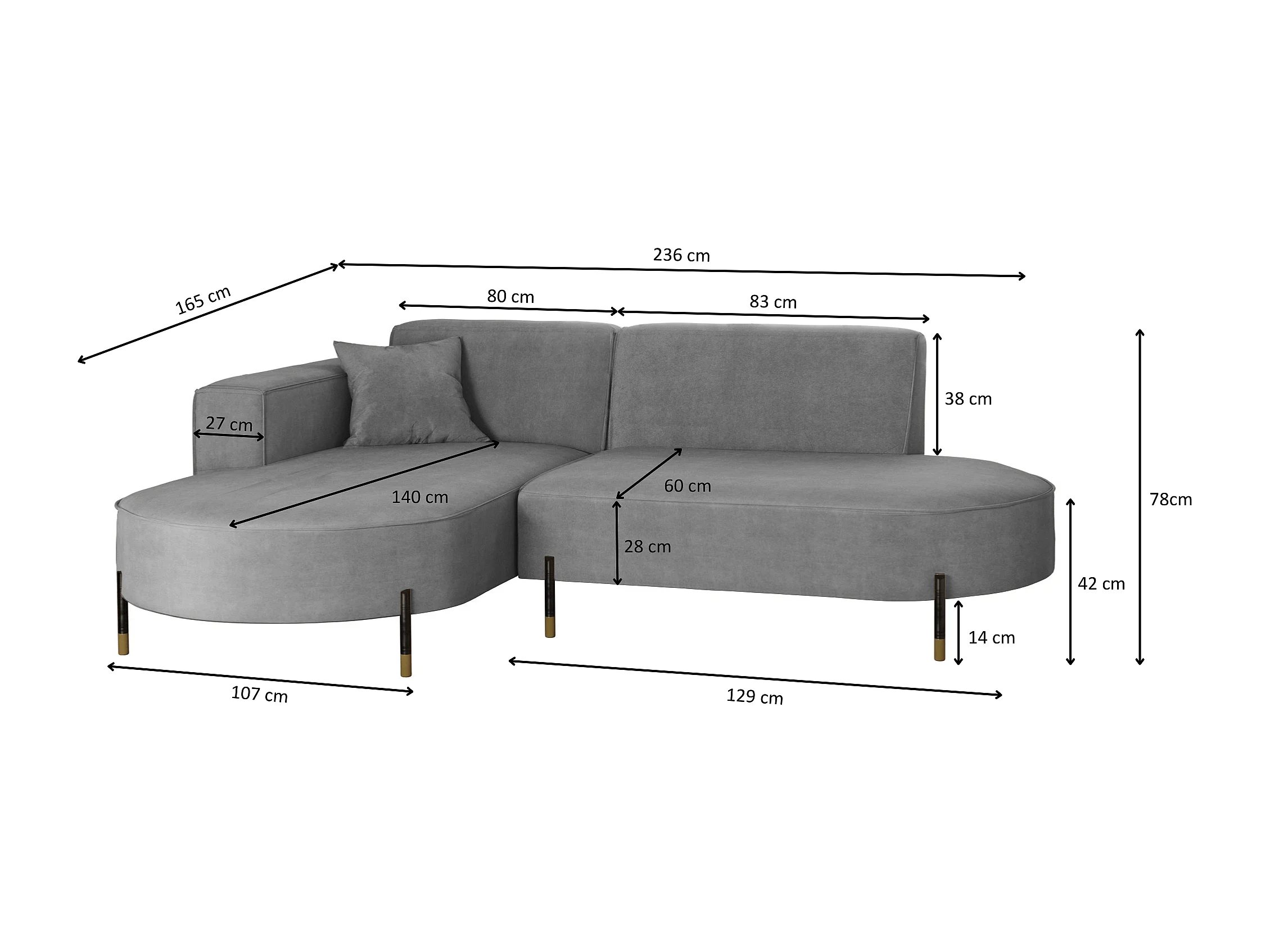 Canapé d'angle, canapé en L, designer Modena, tissu pur Noel, gris cendré, gauche