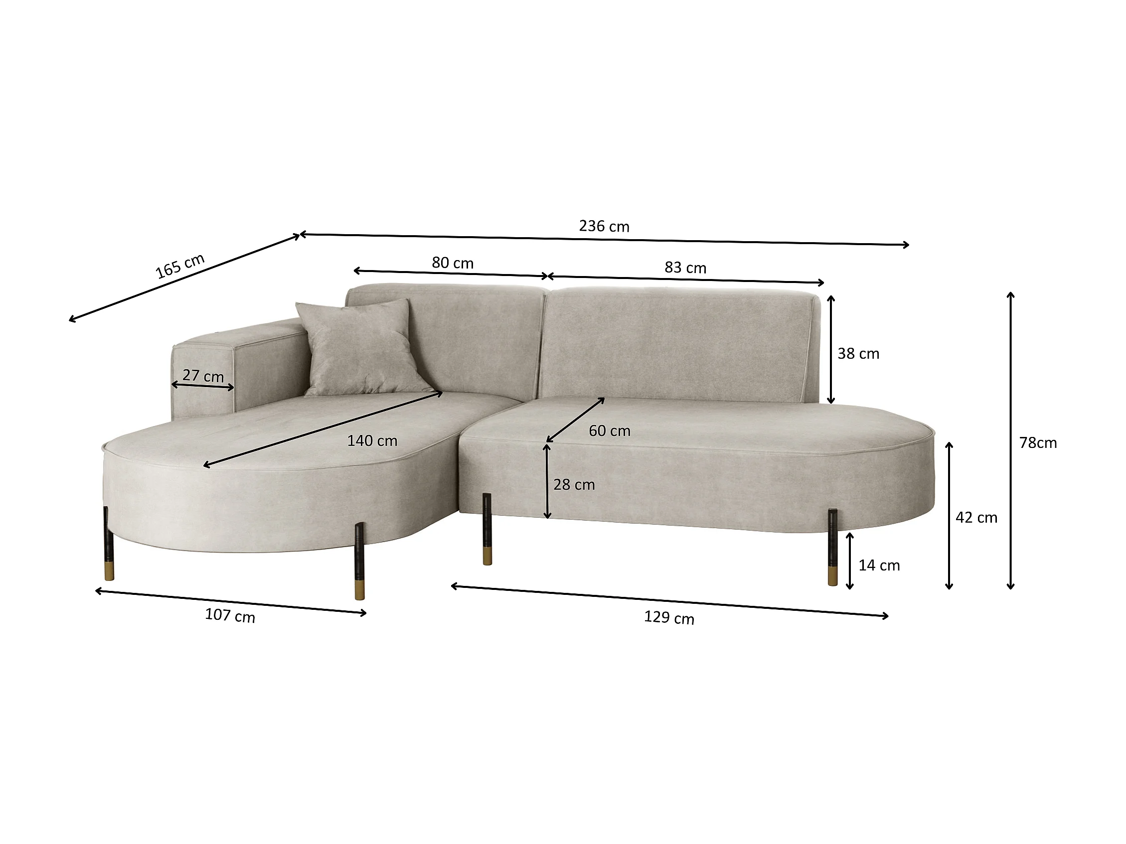 Canapé d'angle, canapé en L, designer Modena, tissu pur Noel, gris clair, gauche