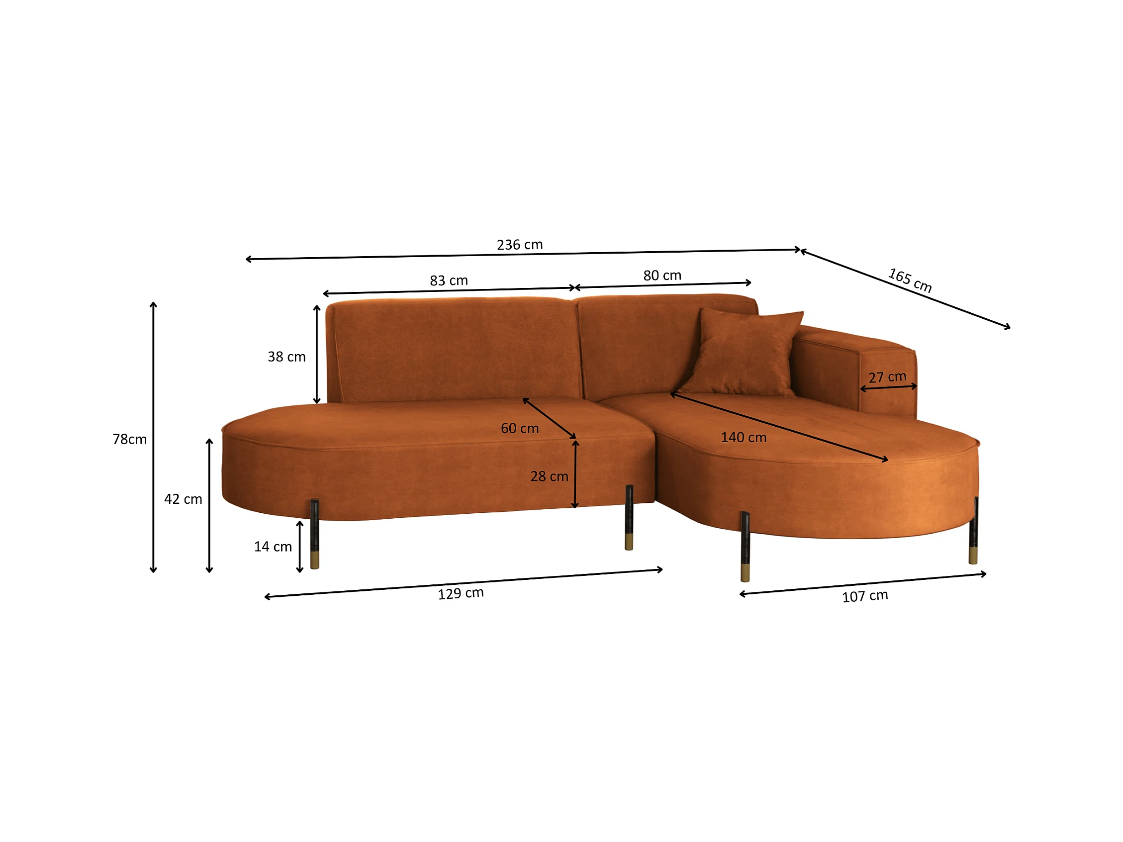 Canapé d'angle en L PULA, tissu Perfect Harmony, orange, droit