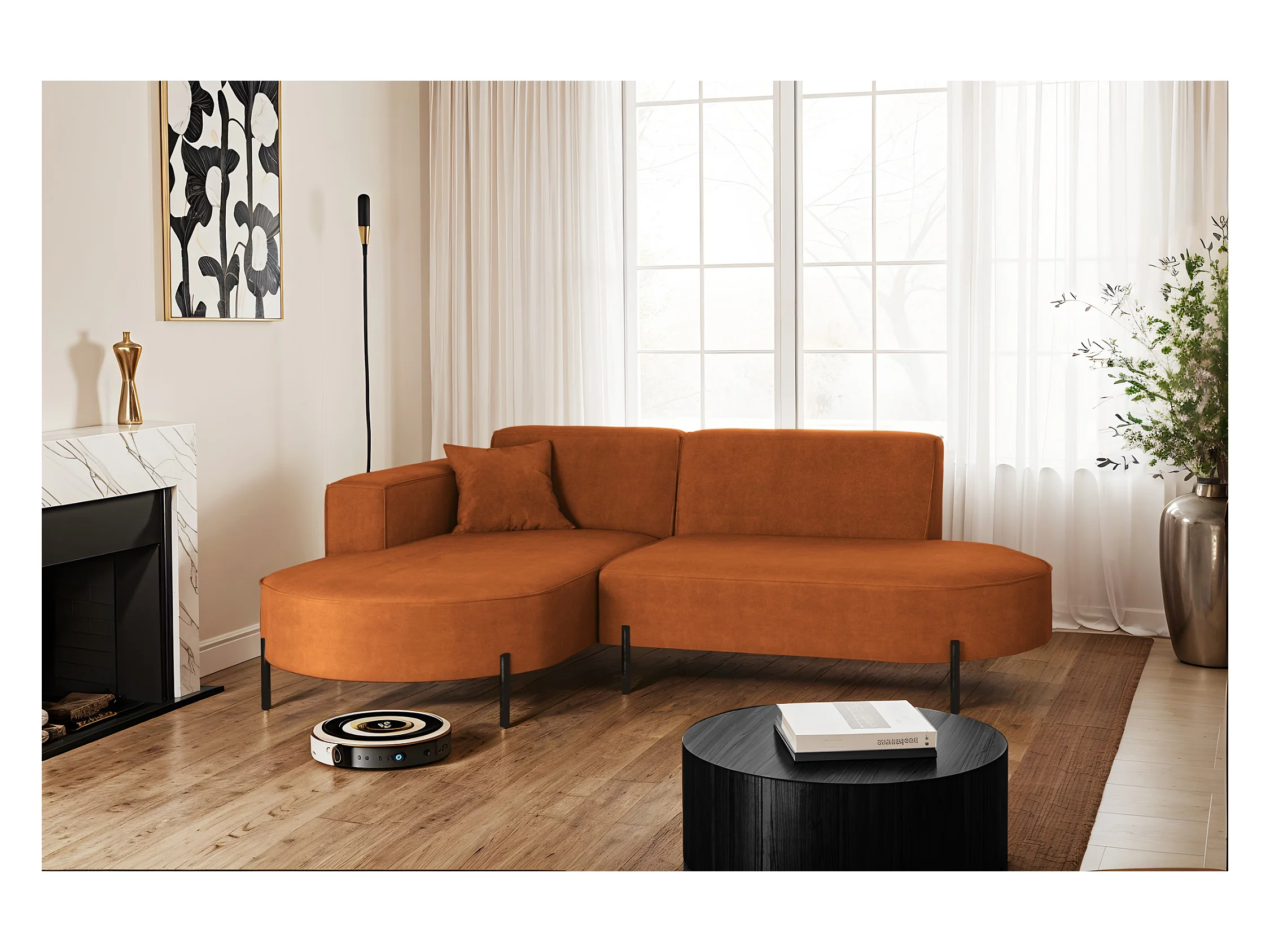 Canapé d'angle en L PULA, tissu Perfect Harmony, orange, gauche