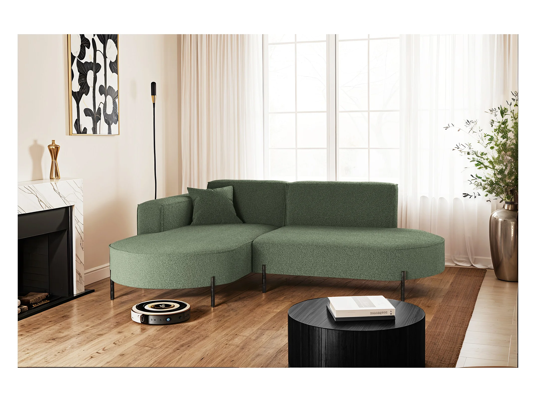 Canapé d'angle L-form Round Cursal, tissu Salvador, olive, gauche