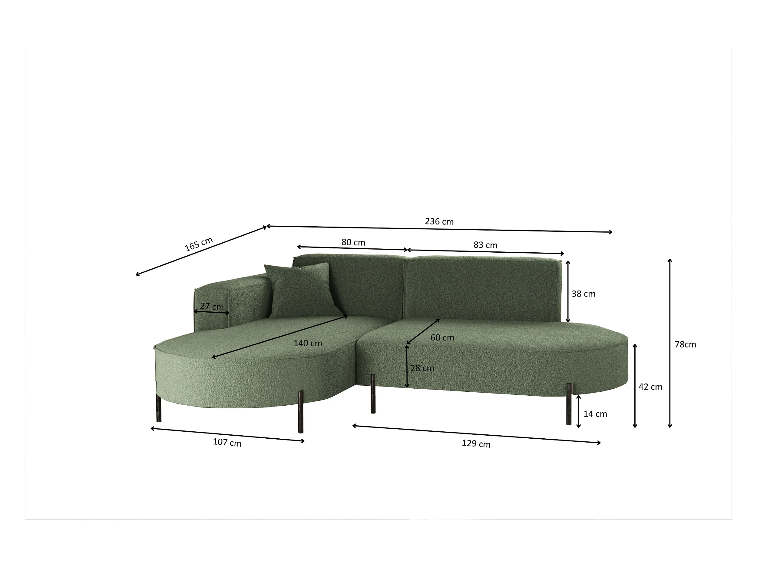 Canapé d'angle Cursal Atelier, tissu Poso, vert, gauche