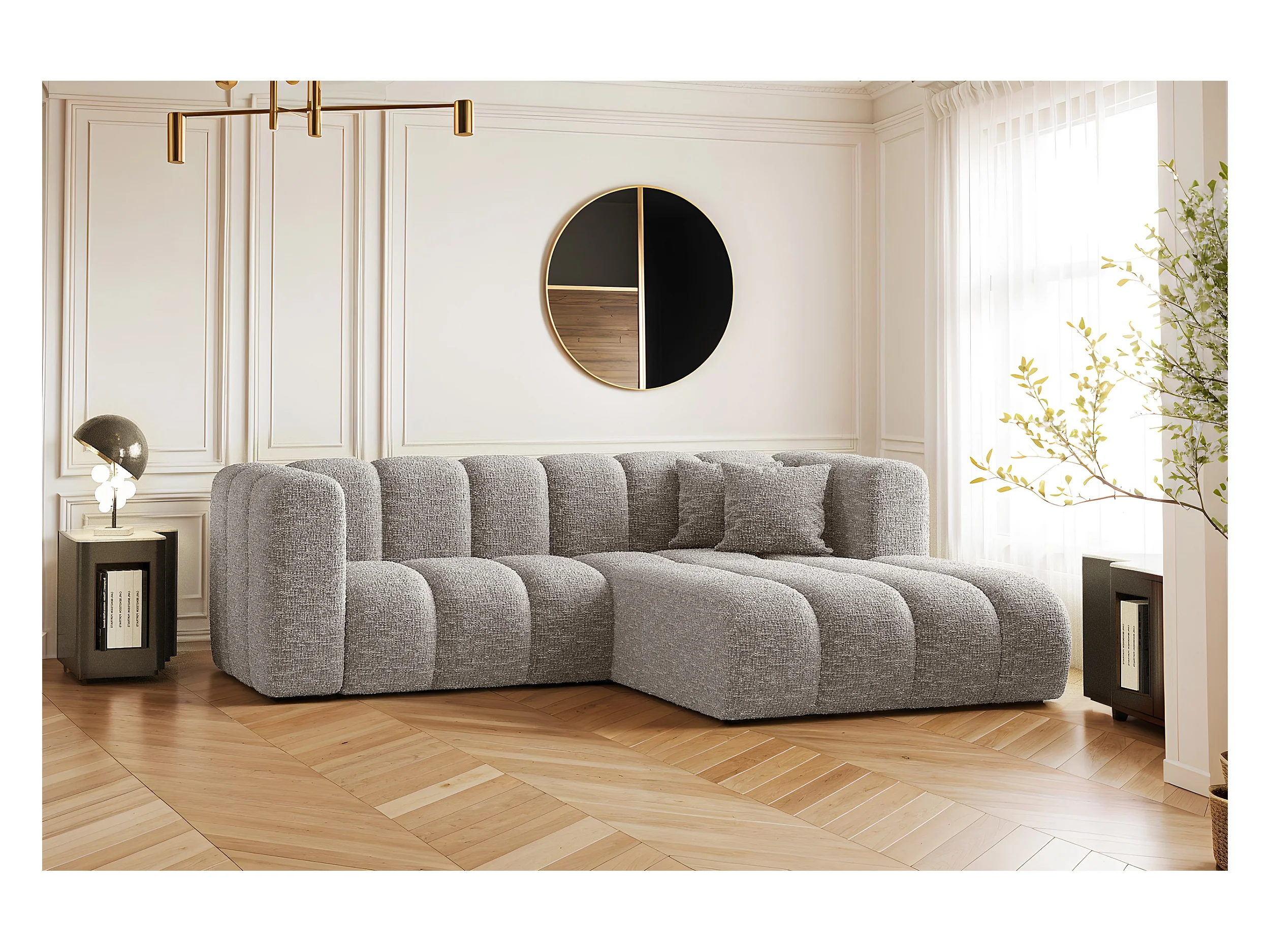 Canapé d'angle en L PULA, tissu Perfect Harmony, gris, droit