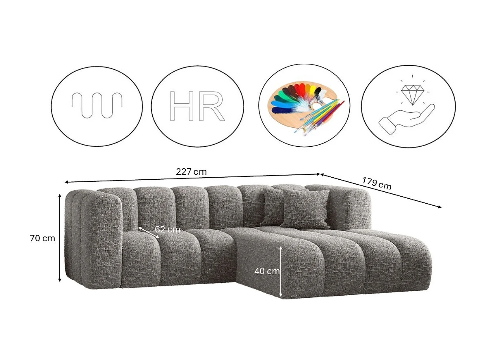 Canapé d'angle en L PULA, tissu Perfect Harmony, gris, droit