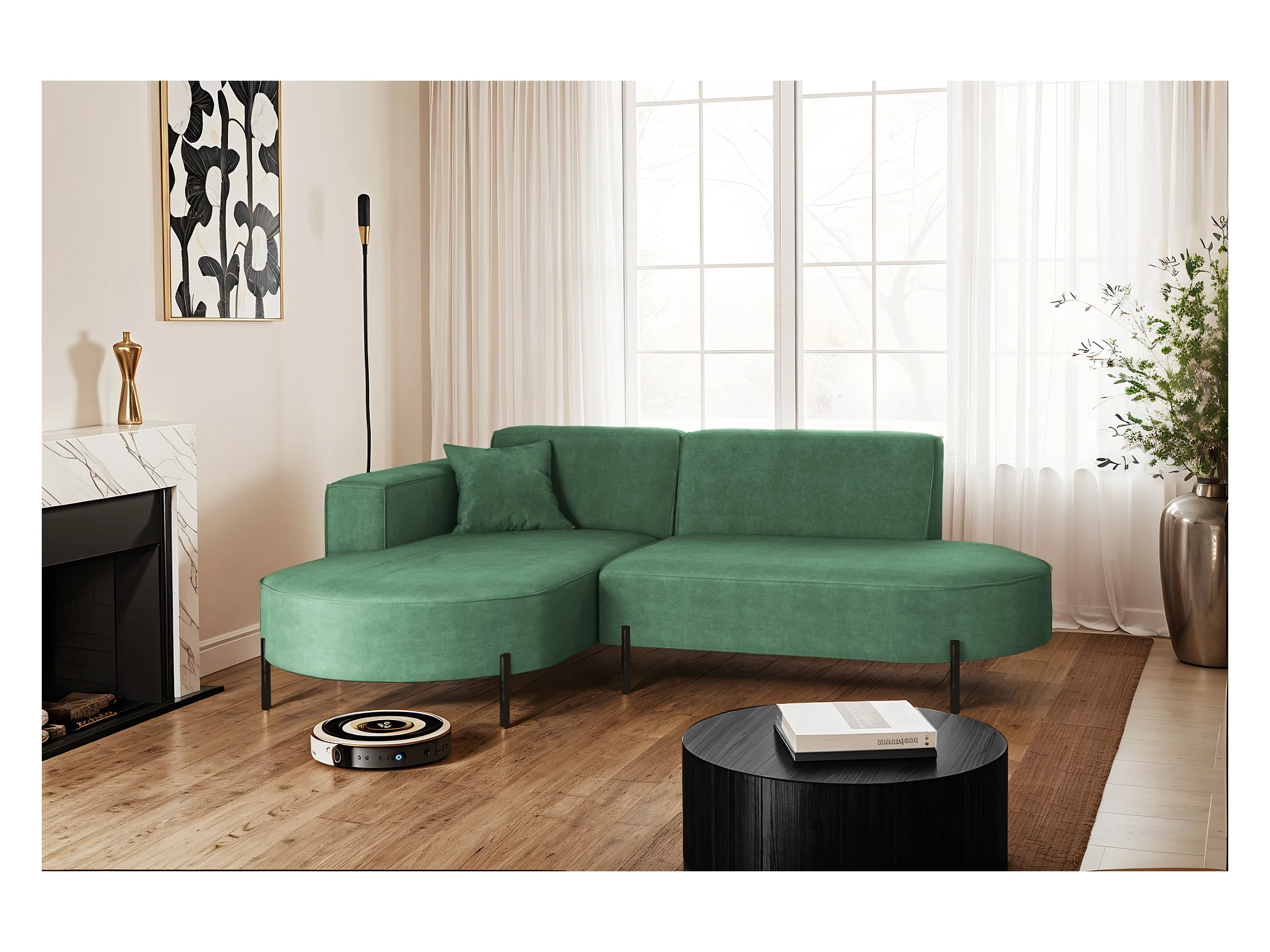 Canapé d'angle en L PULA, tissu Opera Velvet, vert foncé, gauche