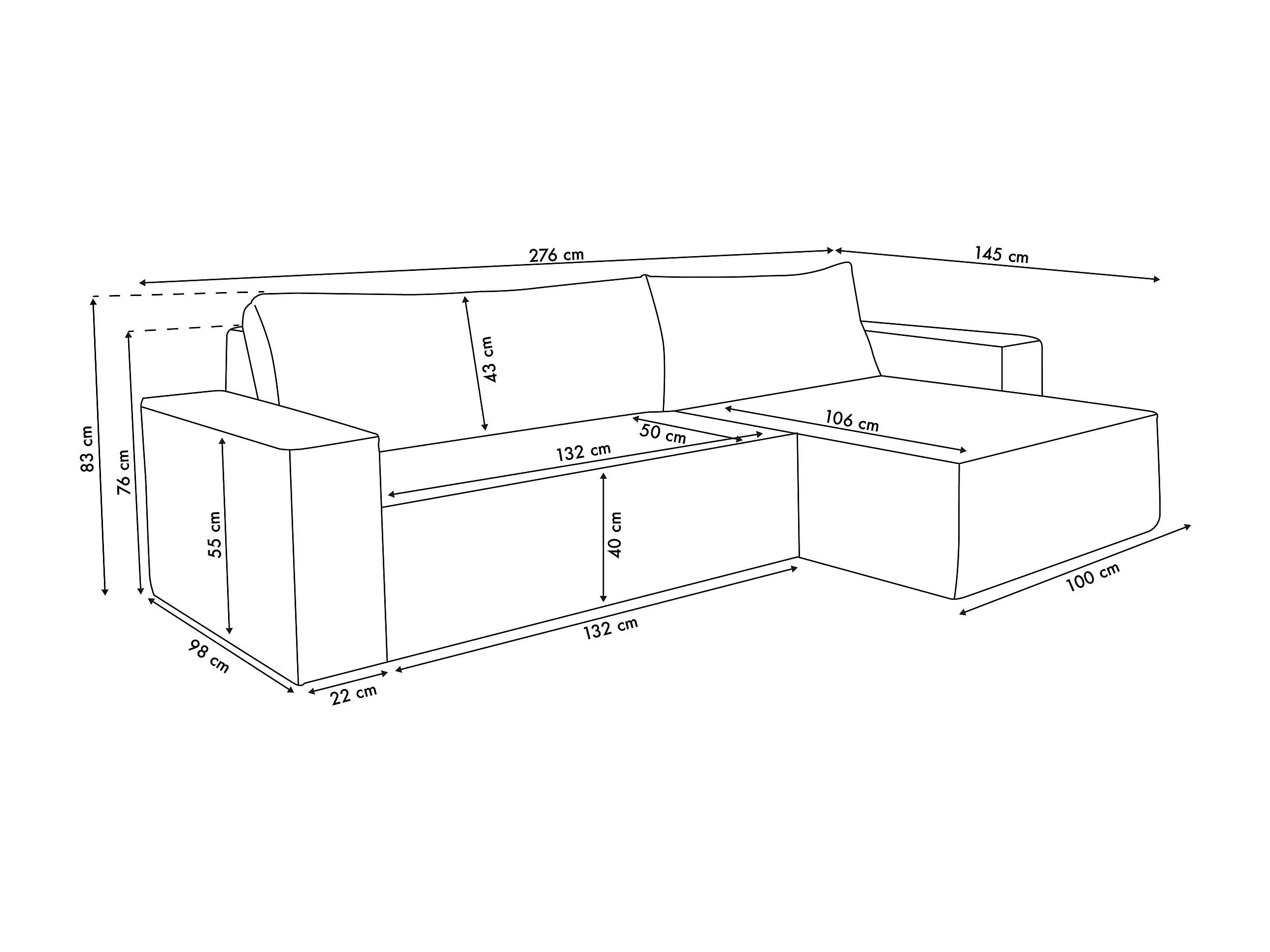 Canapé d'angle Jerry avec fonction couchage et coffre de rangement, couleur : marron, tissu velours, pouf à gauche