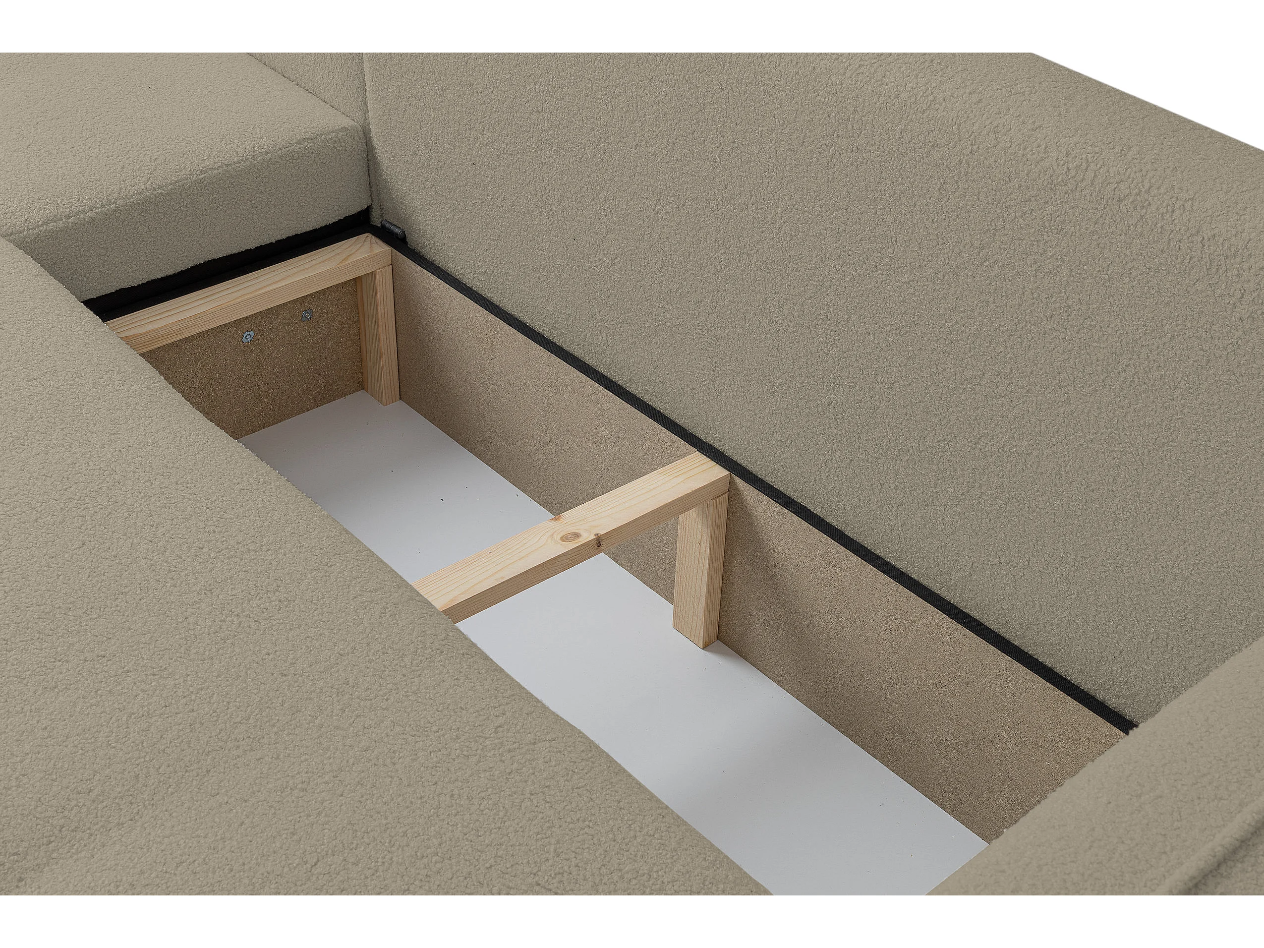 Ensemble de salon Luna U, canapé en U avec fonction couchage et coffre de rangement, couleur : marron clair, tissu cordé