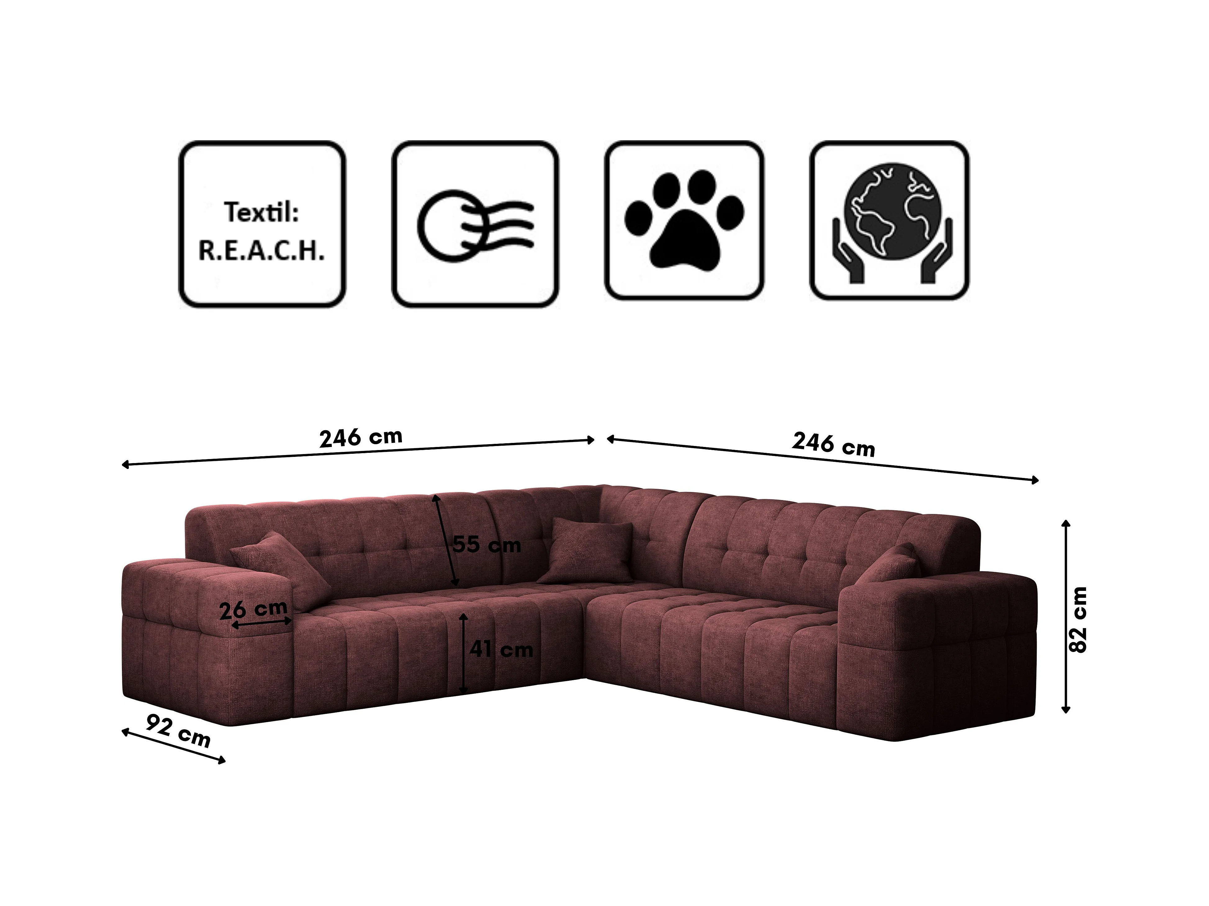 Canapé d'angle PULA, tissu Perfect Harmony, vin rouge