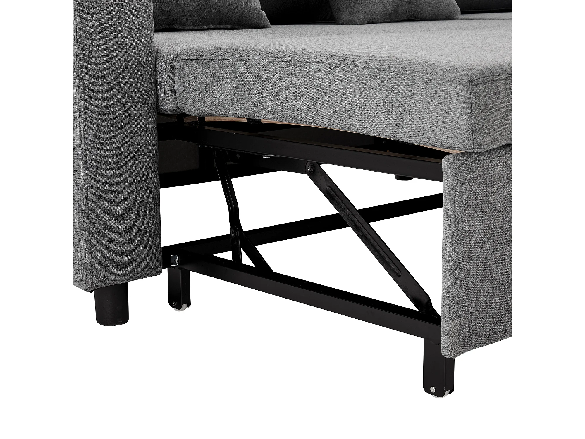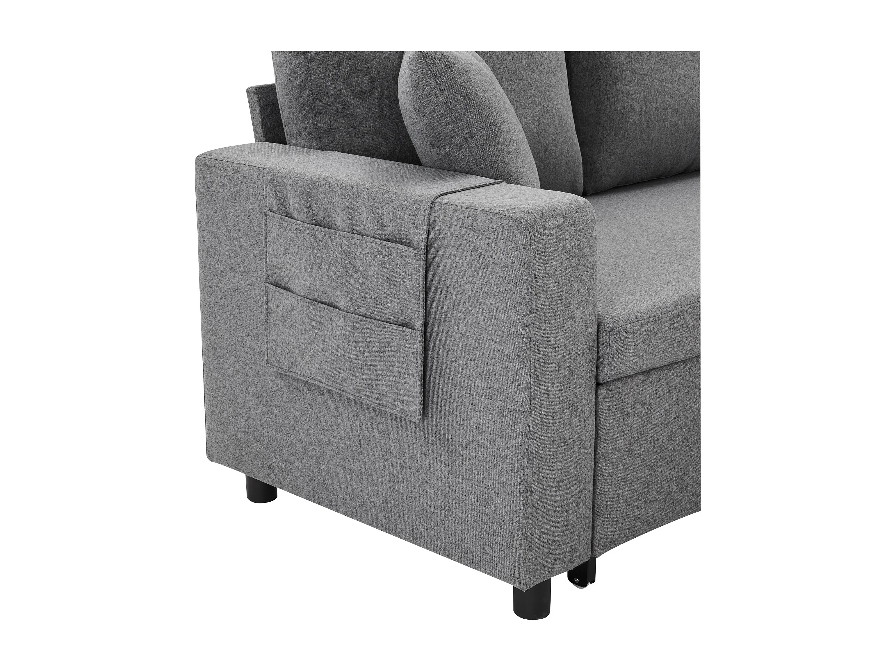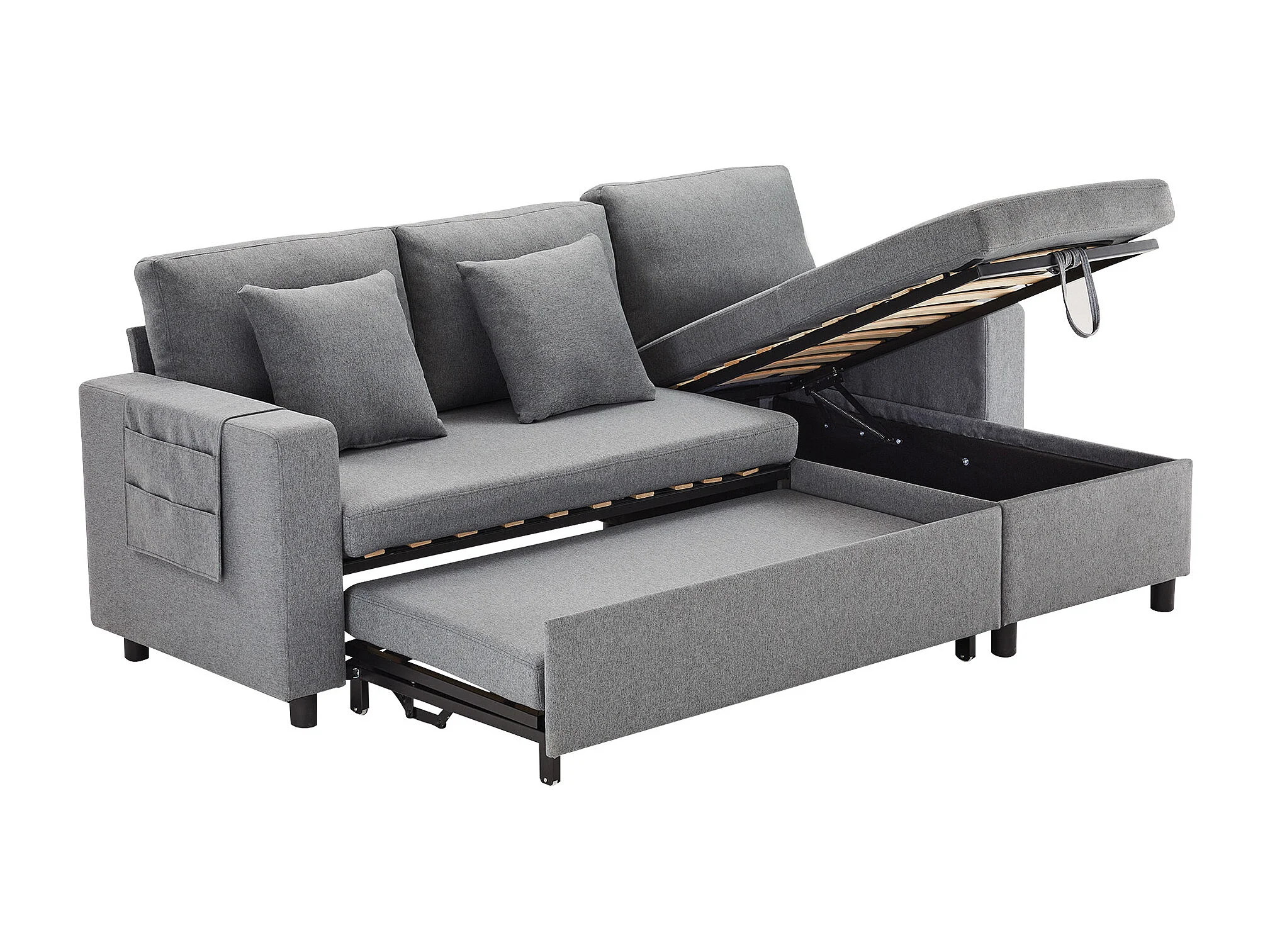 Canapé d’angle convertible 219.5x142.5x83 cm, méridienne réversible, coffre de rangement, poches latérales, lin gris foncé