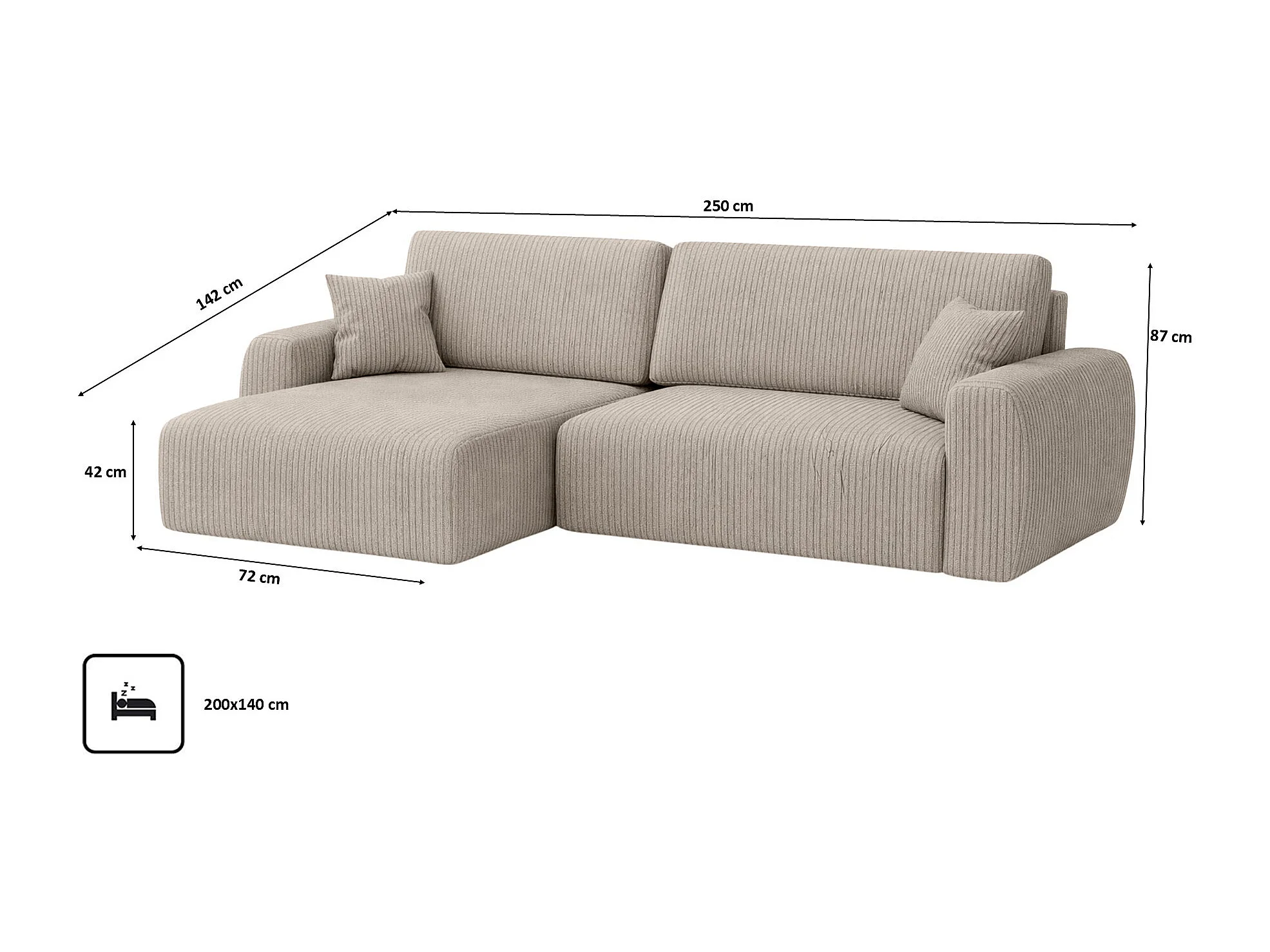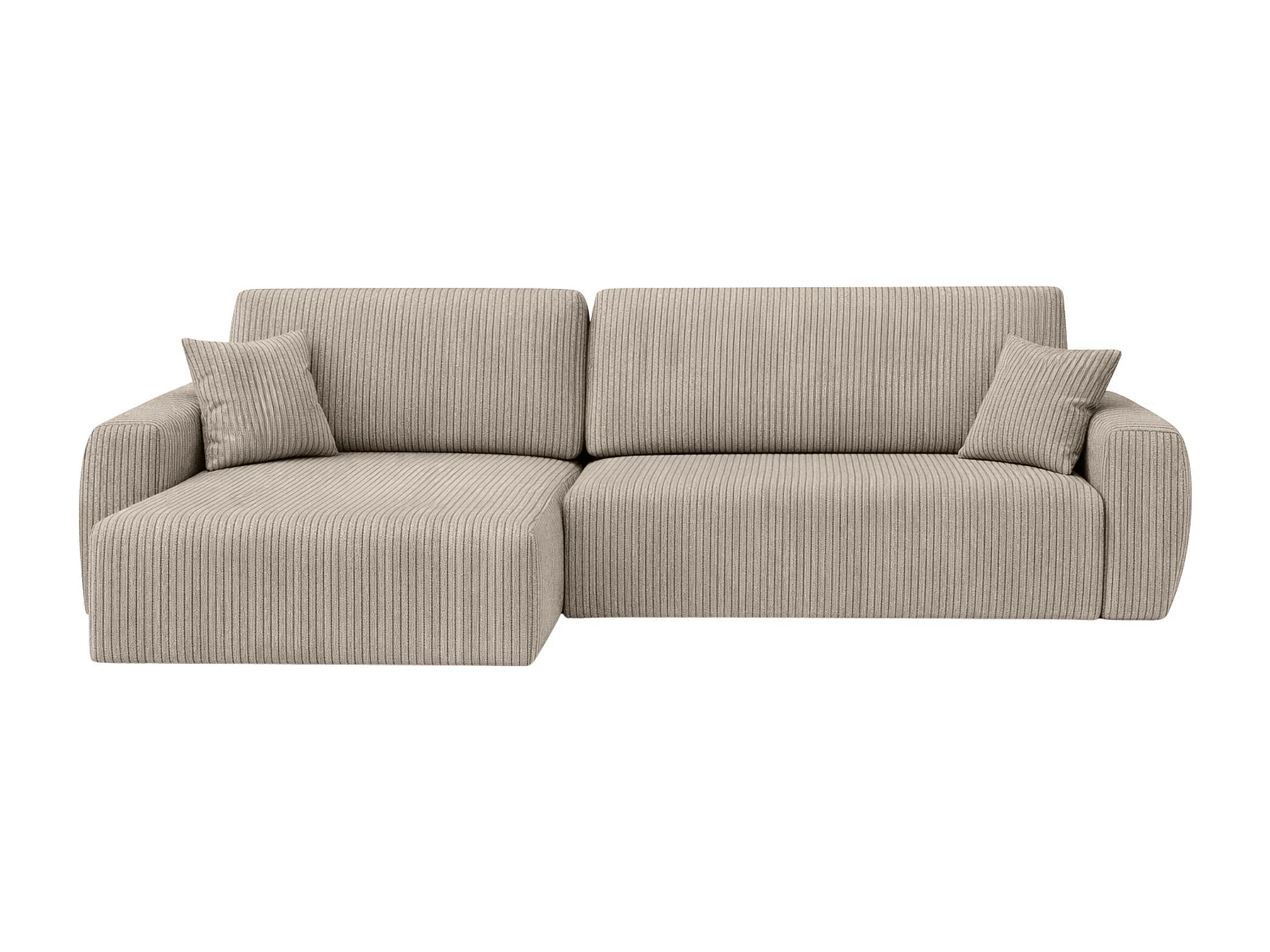 Canapé d'angle convertible avec coffre de rangement Ariel L, tissu côtelé, tissu Poso, beige foncé, côté gauche