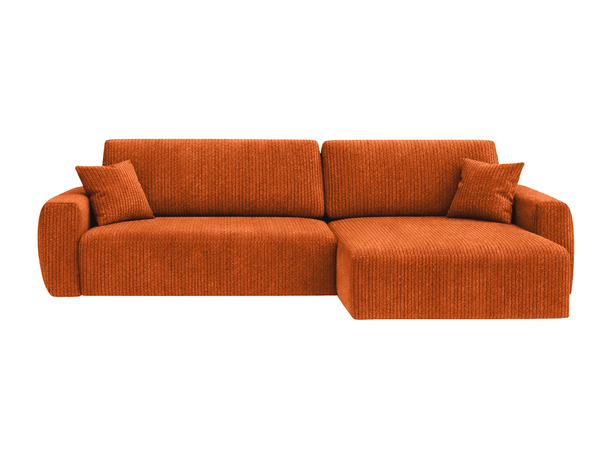 Canapé d'angle convertible avec coffre de rangement Ariel L, tissu côtelé, tissu Poso, cuivre, côté droit