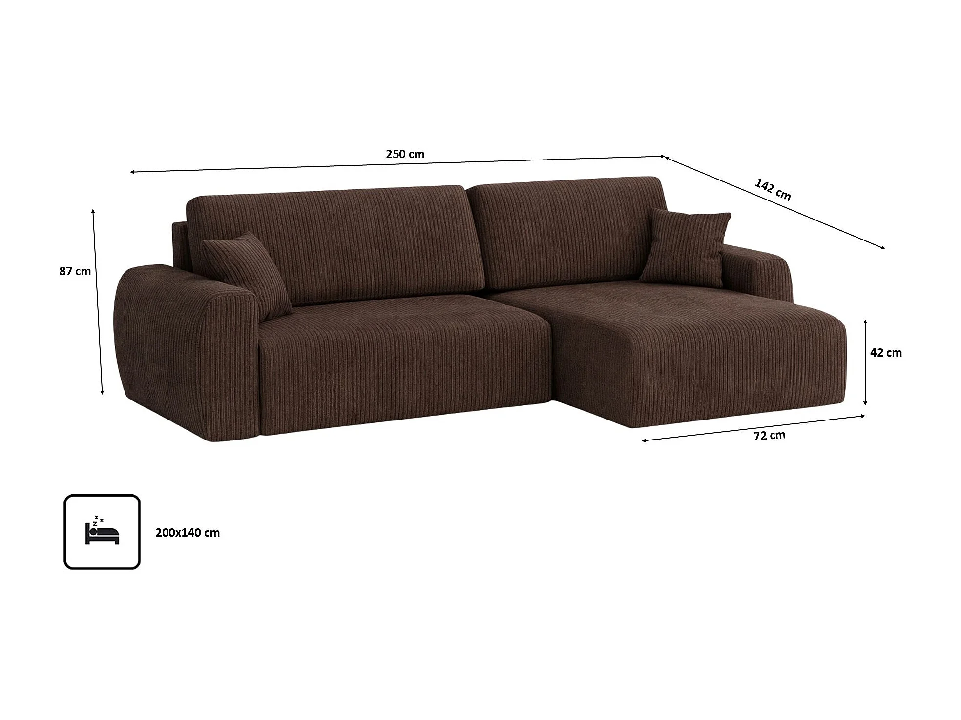 Canapé d'angle convertible avec coffre de rangement Ariel L, tissu côtelé, tissu Poso, marron, côté droit