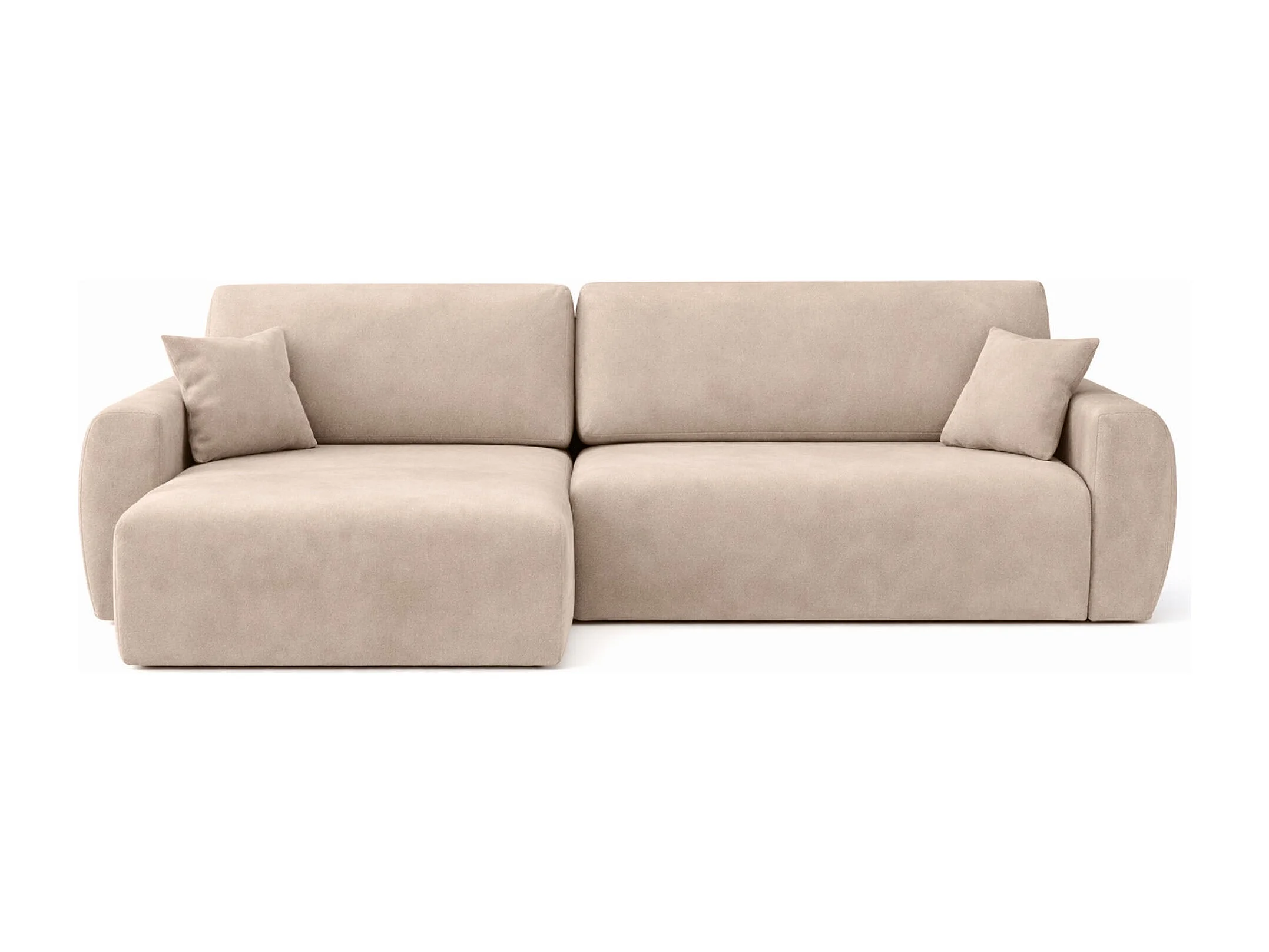 Canapé d'angle convertible avec coffre de rangement Ariel L, velours, tissu Salvador, beige, côté gauche