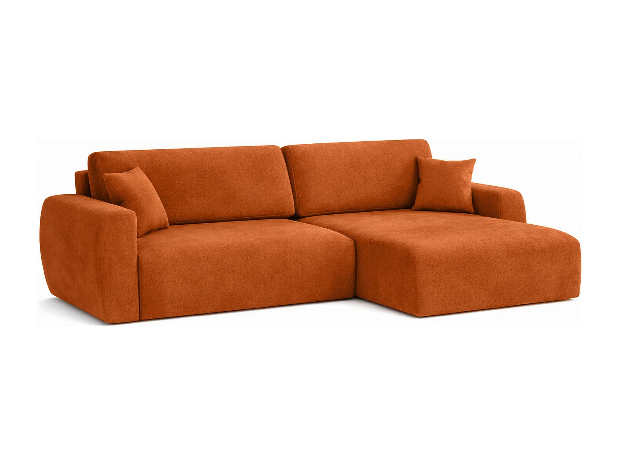 Canapé d'angle convertible avec coffre de rangement Ariel L, velours, tissu Salvador, marron, côté droit