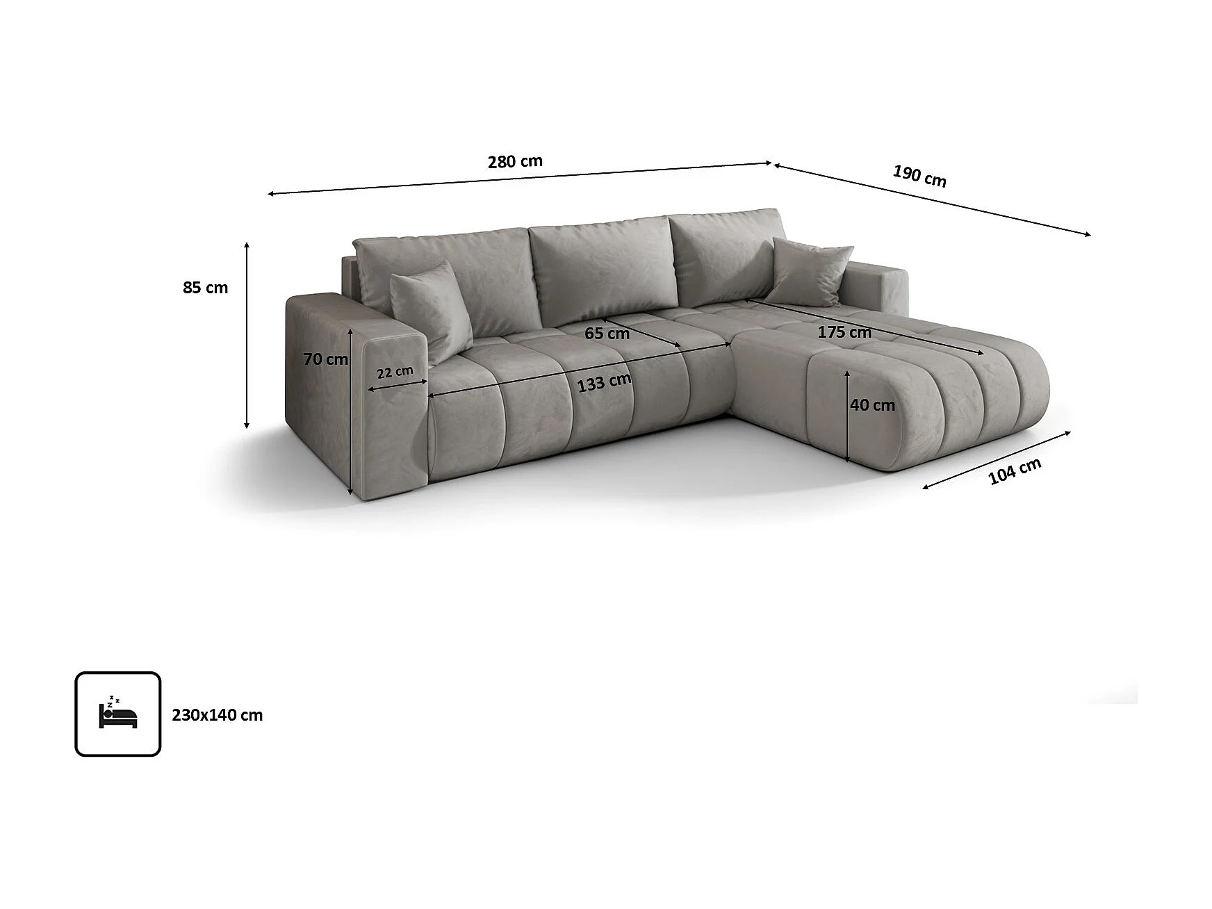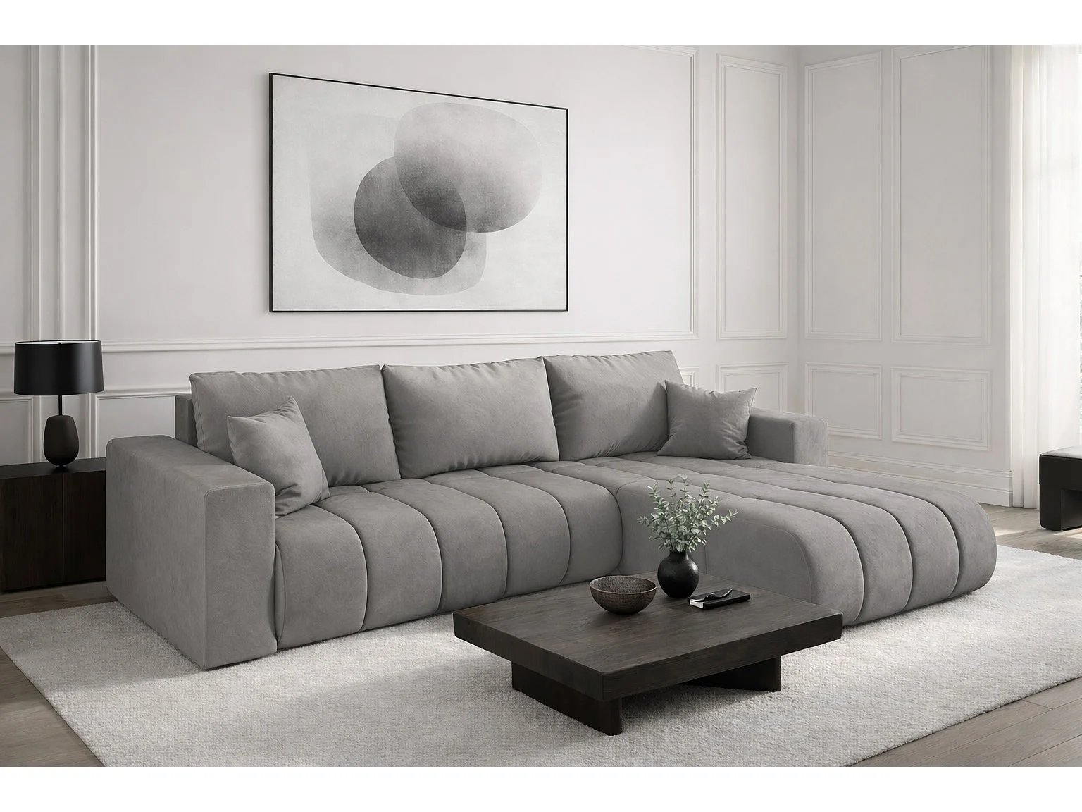 Canapé d'angle convertible avec compartiment de rangement MILO PREMIUM, tissu MONOLITH, gris clair, côté droit