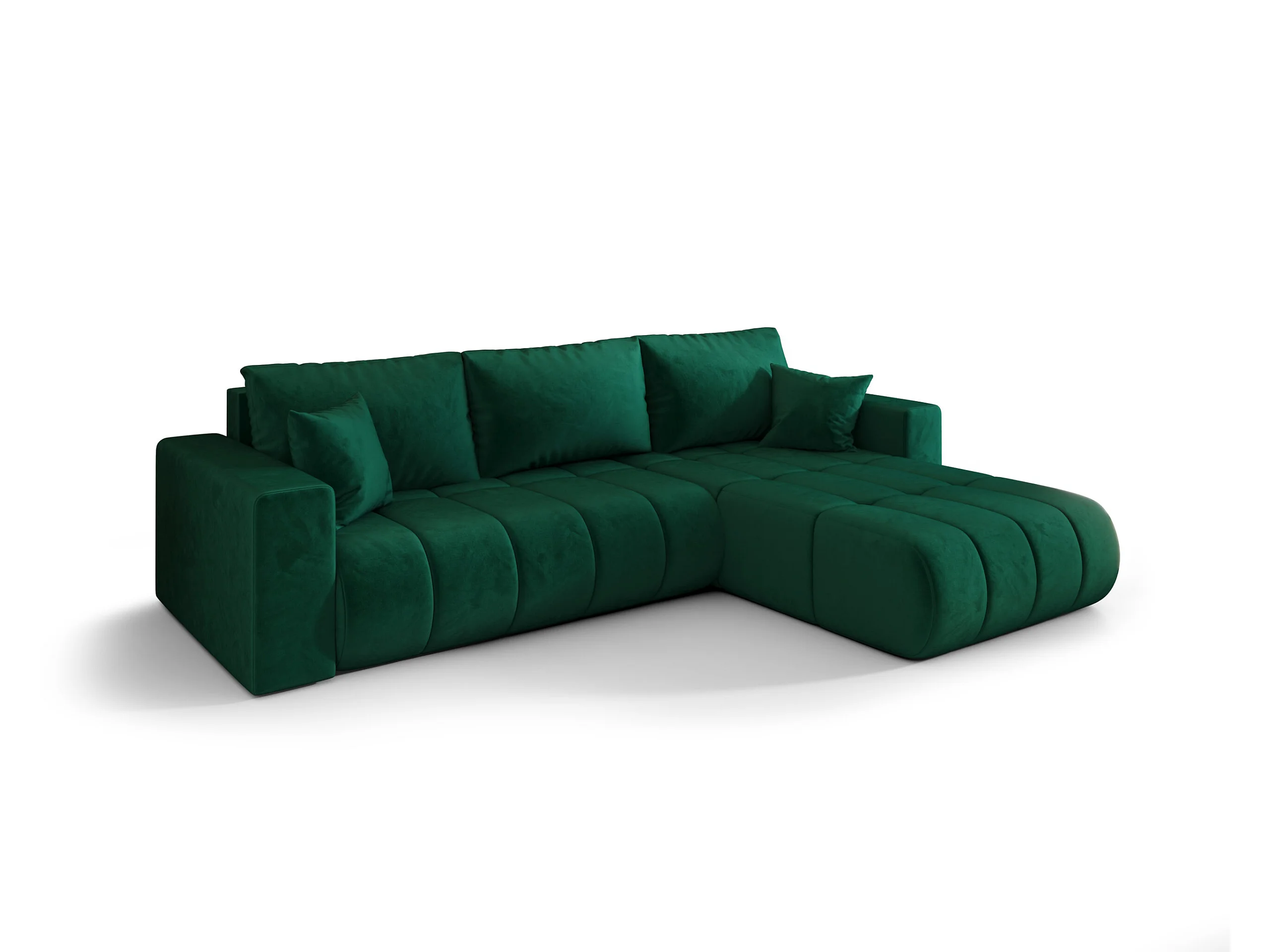 Canapé d'angle convertible avec compartiment de rangement MILO PREMIUM, tissu MONOLITH, vert, côté droit