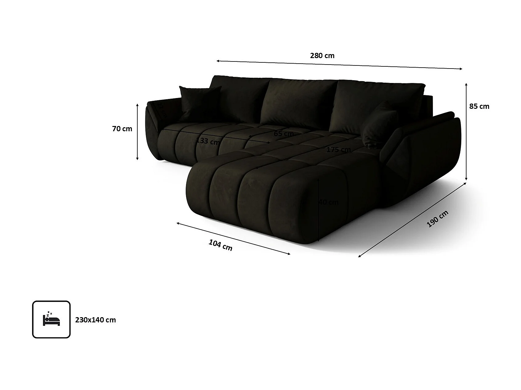 Canapé d'angle convertible avec compartiment de rangement TOKYO PREMIUM, tissu MONOLITH, anthracite, à droite
