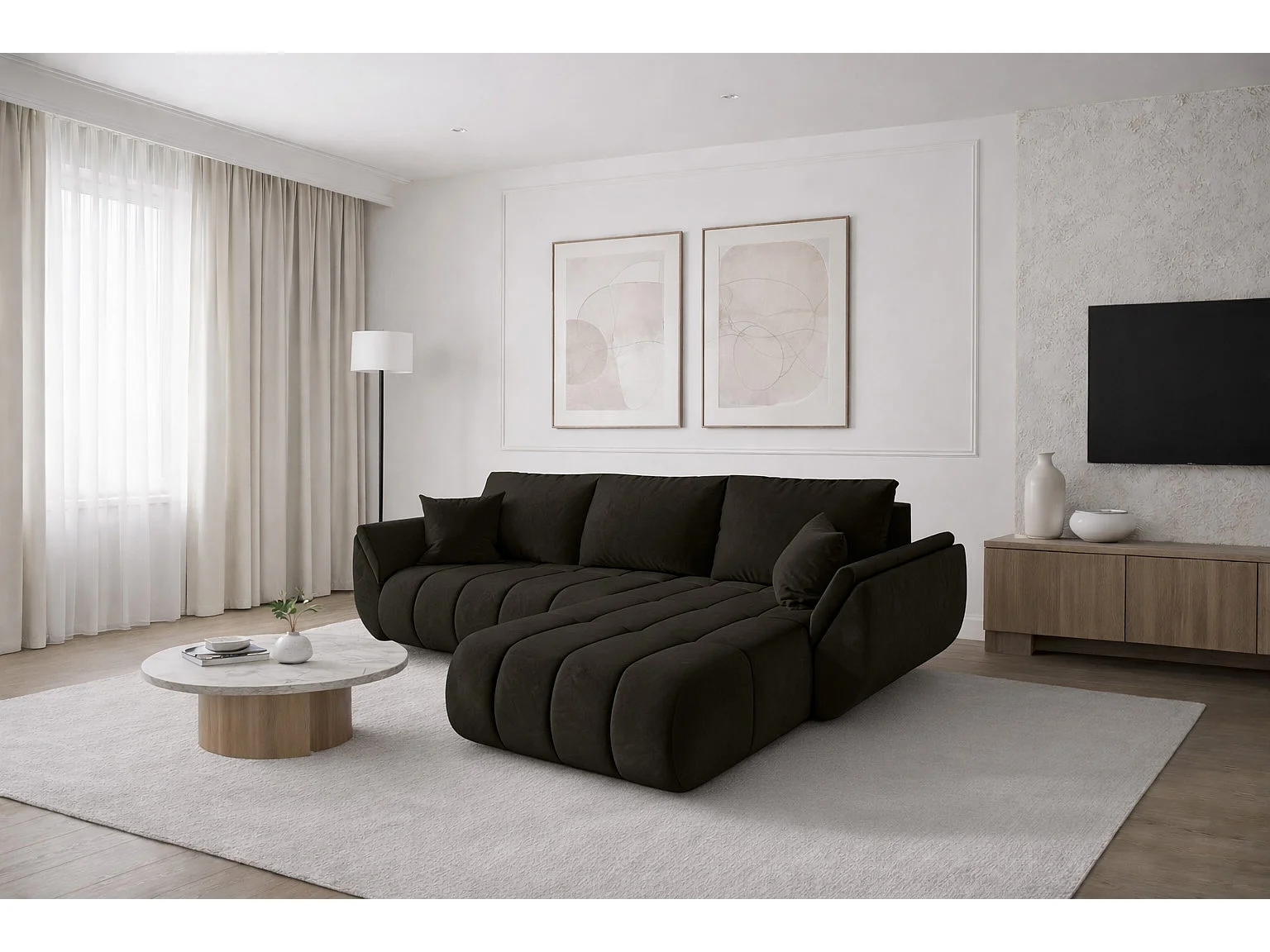 Canapé d'angle convertible avec compartiment de rangement TOKYO PREMIUM, tissu MONOLITH, gris foncé, côté droit