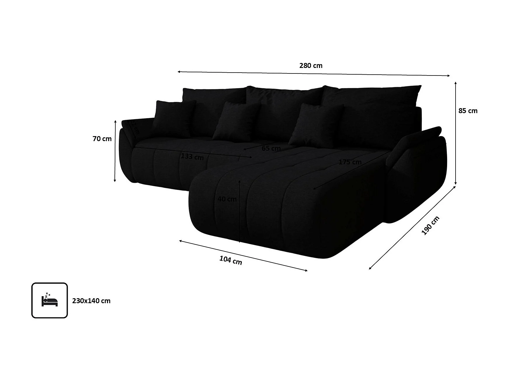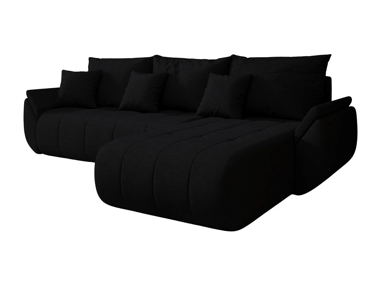 Canapé d'angle convertible avec compartiment de rangement TOKYO, tissu WIND, noir, côté droit