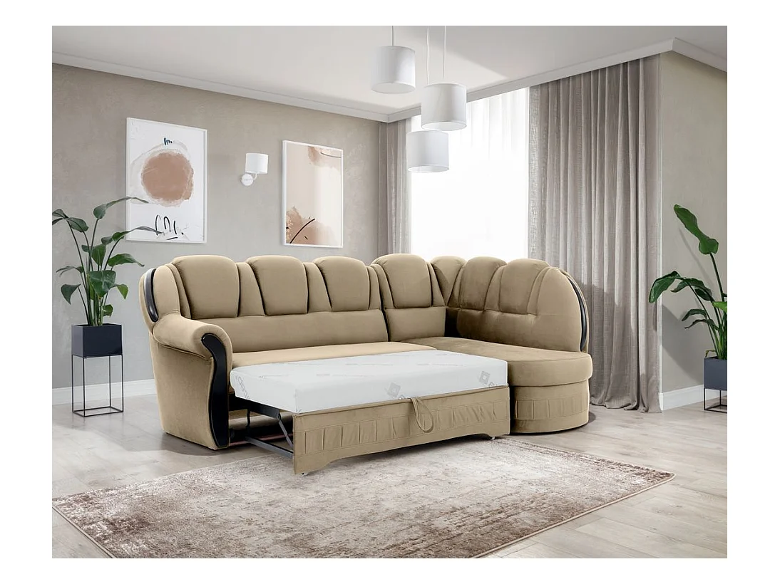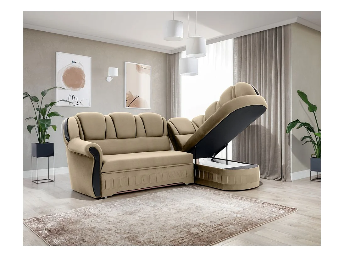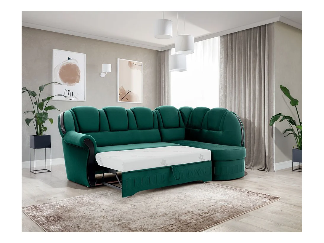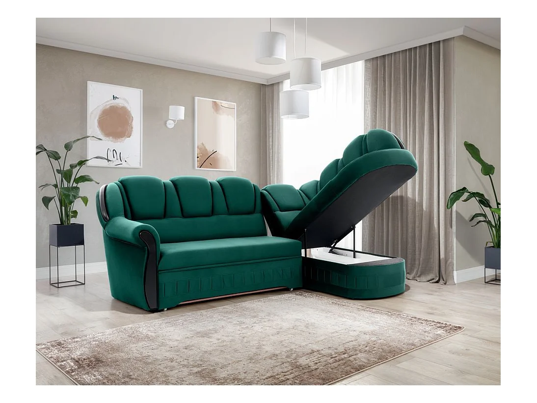Canapé d'angle convertible avec rangement en velours Majesté-Vert-angle droit