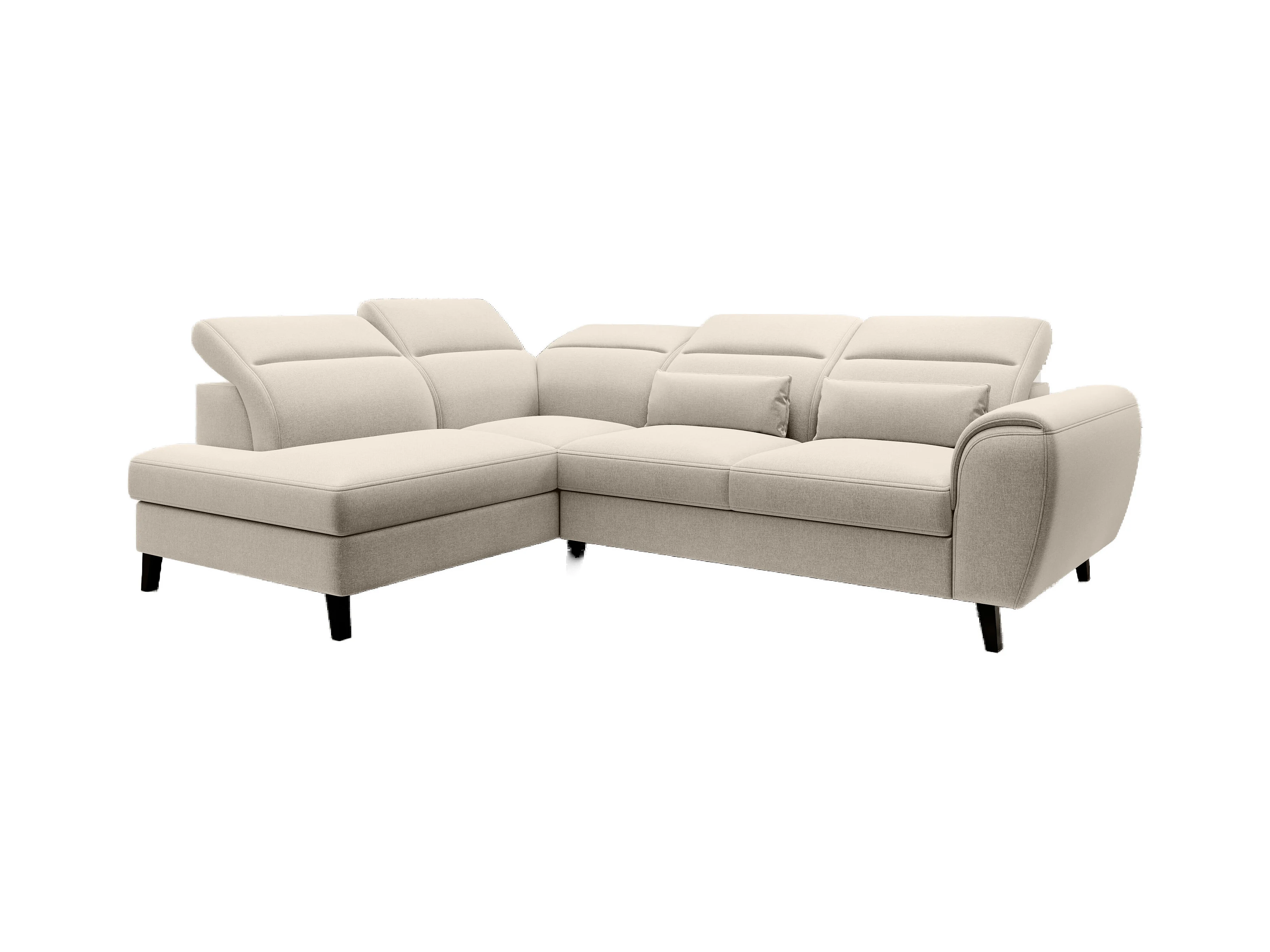 Canapé d’angle convertible tissu appuis-tête réglables KATE – Coffre et pieds métal noir-Beige-angle droit